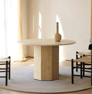 天然大理石丸テーブル|エレガントな合皮仕上げ・多層板構造|リビング・ダイニングに最適! hbso-3009