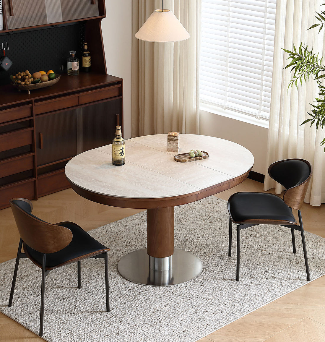 伸縮式セラミックテーブル 丸テーブルベージュ系天板 多機能ダイニングテーブルfsy-1100