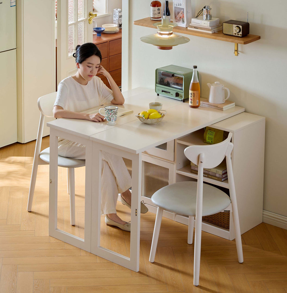 折りたたみ天板 伸縮テーブル 収納ラック 省スペース 壁付け おしゃれ北欧 fjnl-1594
