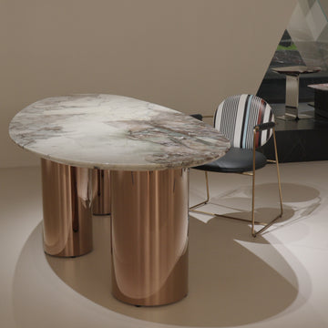 ラグジュアリー天然大理石テーブル | ステンレス脚付き円形丸テーブル | hbso-3012