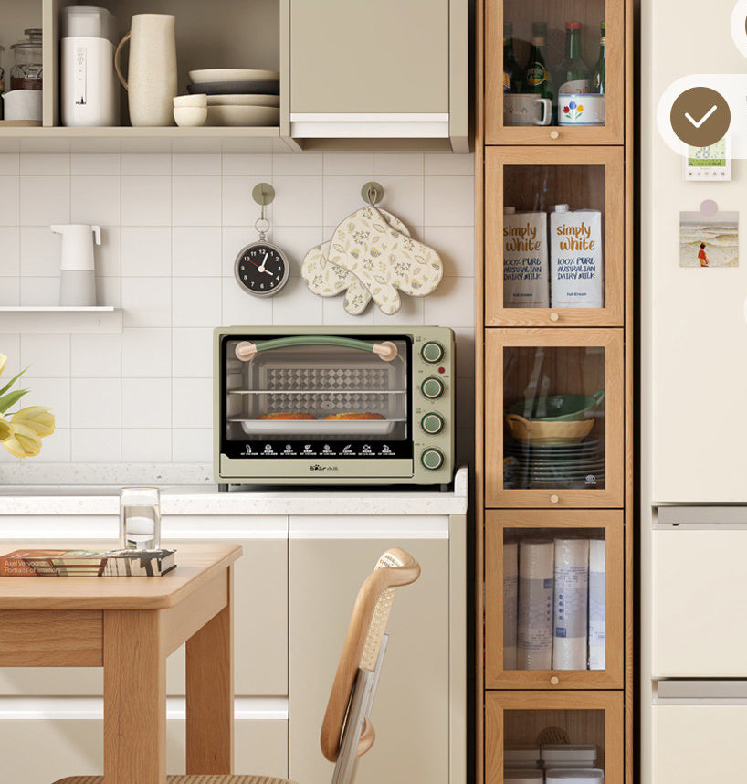 幅わずか30〜40cmの超薄型デザインが魅力の収納棚。天然オーク無垢材の美しい木目が、リビングやキッチンの空間を上品に演出します。ガラス扉付きで中身が見やすく、引き出しも備えて整理整頓がスムーズ。大型の収納力を持ちながらもスリム設計で、省スペースに最適です。転倒防止設計で安全性にも配慮し、モダンかつナチュラルなヴィンテージ風の雰囲気がインテリアに洗練されたアクセントを添えます。