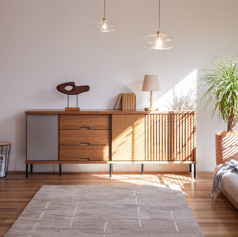 和の落ち着きと北欧のシンプルさを融合したジャパンディスタイルのサイドボードです。幅160~200cmのゆったりとしたサイズで、収納力も十分。3色のカラーバリエーションからお選びいただけ、お部屋の雰囲気に合わせてコーディネート可能です。機能性とデザイン性を兼ね備えた逸品で、和モダンな空間づくりに最適です。