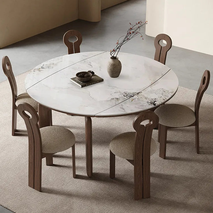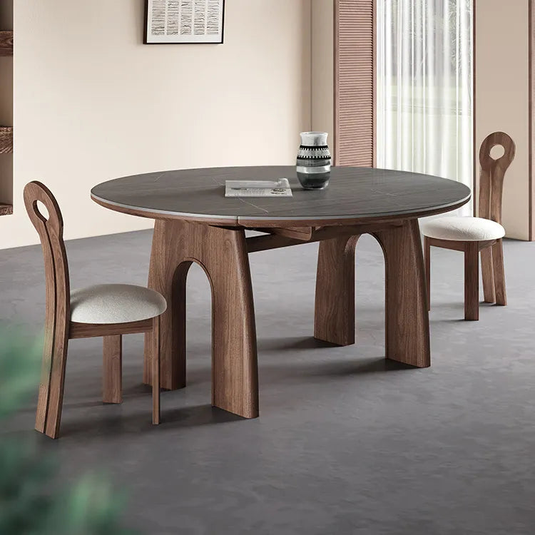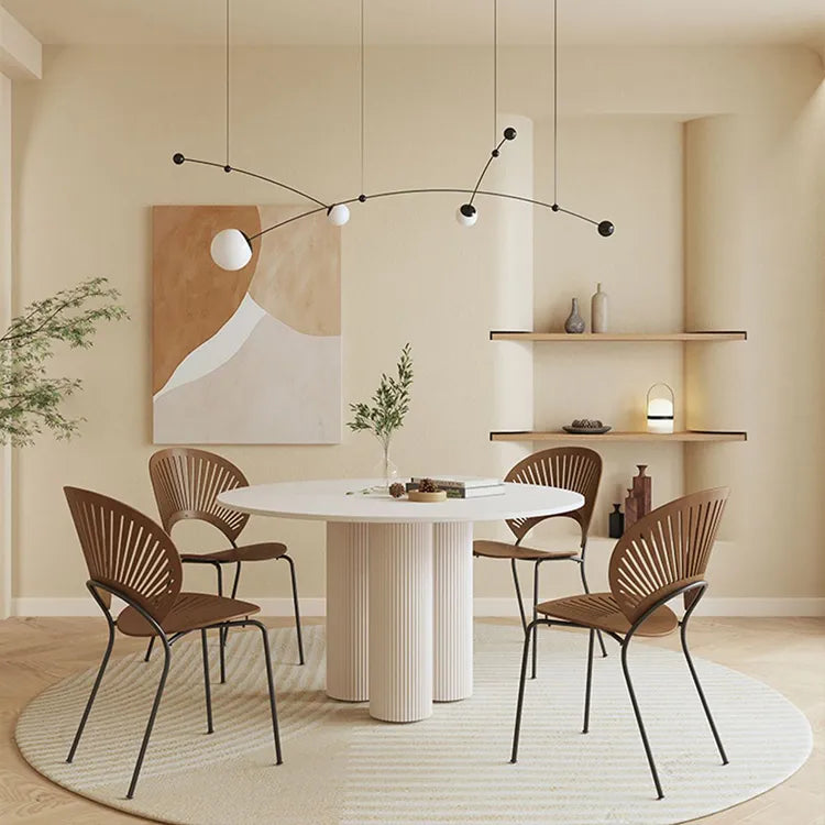 セラミック天板の丸テーブル|天然木無垢の素材感と脚のデザインが個性的なダイニング fmus-4081