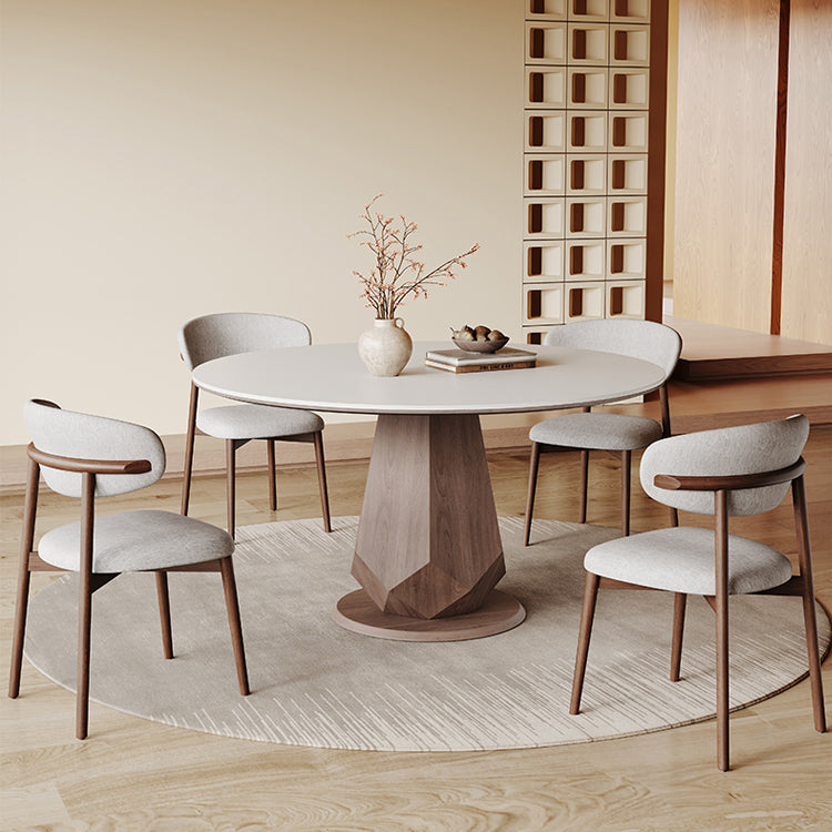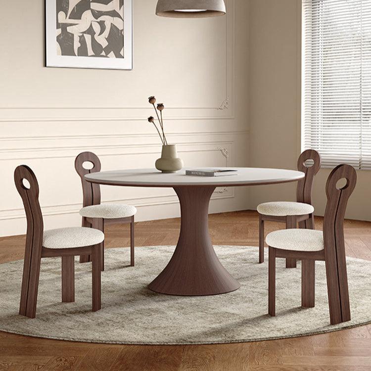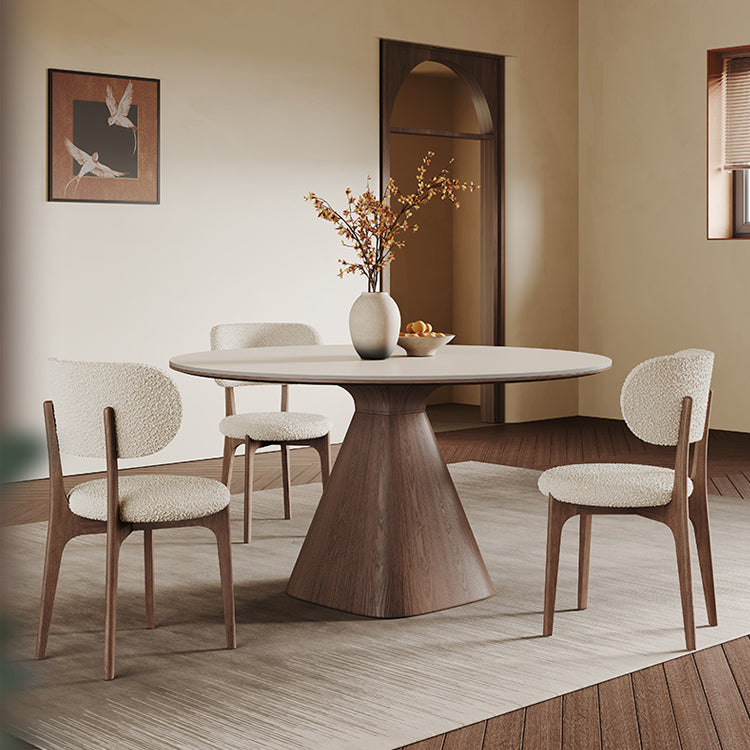 美味しいお食事を楽しめる、おしゃれな円形ダイニングテーブル。ブラウンカラーの1本脚デザインとホワイトのセラミック製天板が調和し、食卓を華やかに演出します。丸テーブルで、家族や友人と一緒に楽しい時間を過ごしませんか?