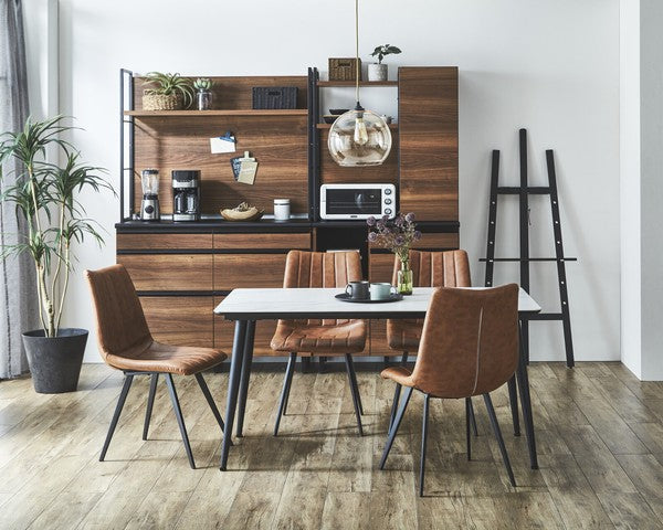 このダイニングテーブルは、セラミック製の天板とコンクリート調のデザインがおしゃれな一台です。木目のデザインは馴染みやすく、ダイニングセットも選択できるので、お部屋にぴったり合うテーブルが見つかります。食卓をもっと楽しくするためのアイテムです。