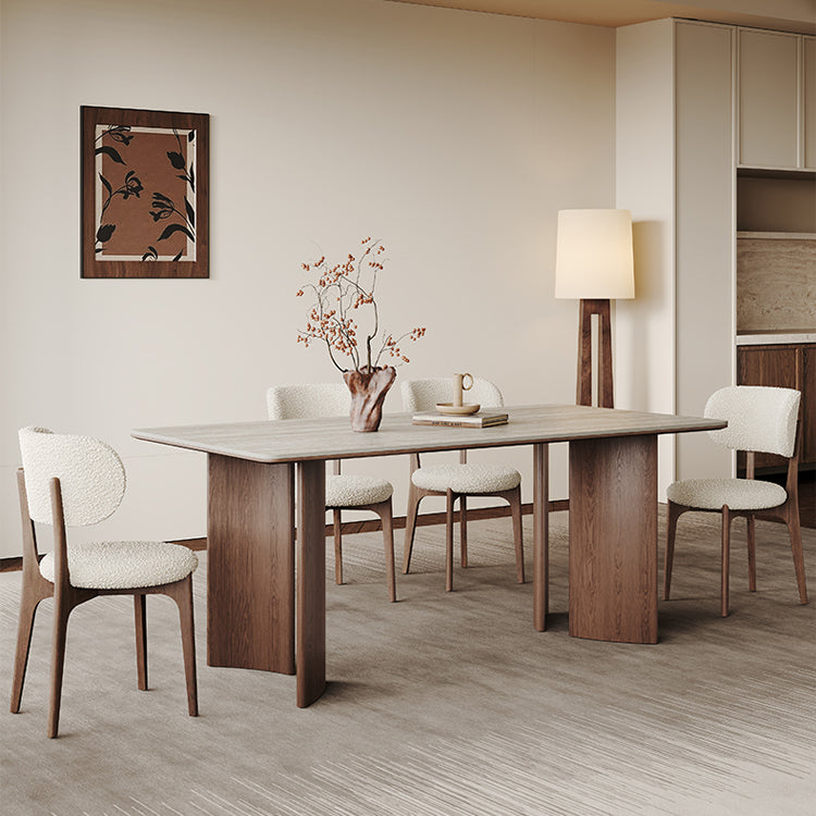 このおしゃれなセラミック製のダイニングテーブルは、無垢材の脚と長方形の形状で、食卓を美しく彩ります。豊かな質感と耐久性を兼ね備えたテーブルは、家族や友人と楽しい食事の時間を提供します。