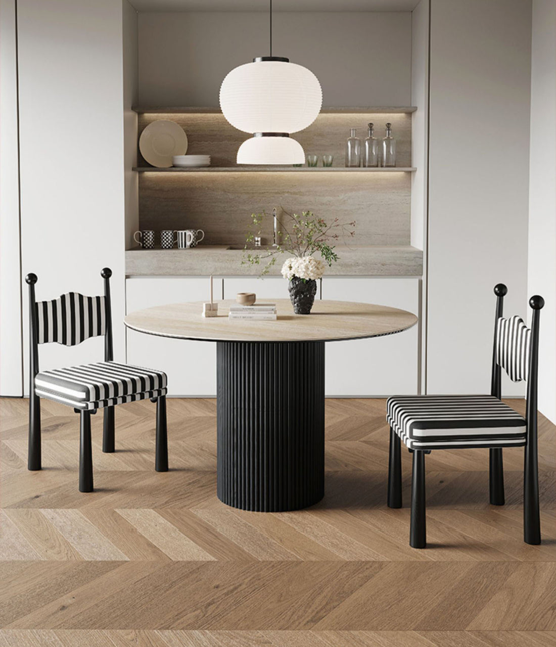 高品質のセラミック製天板と無垢材脚を使用した、おしゃれな北欧風の丸テーブルです。素材の美しさと丁寧な作りが、ダイニングルームをより暖かく、心地良い場所に変えてくれます。
