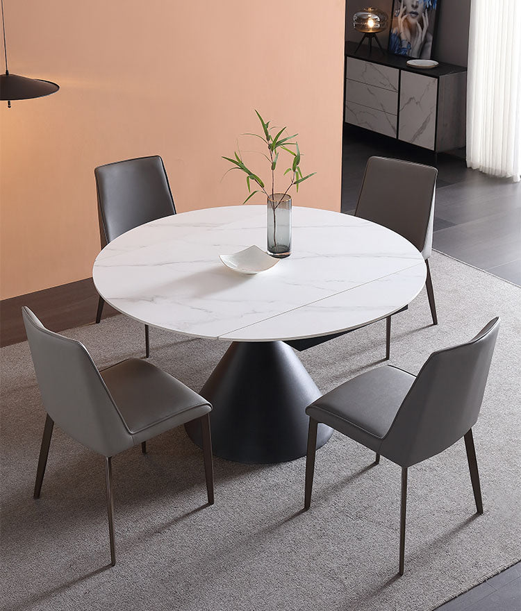 高品質なセラミック天板で作られた伸長式の丸リビングテーブル。コンパクトなサイズから広々としたサイズまで調節可能で、多様なシーンで活用可能。洗練されたデザインでお部屋を美しく演出し、快適な空間を提供します。