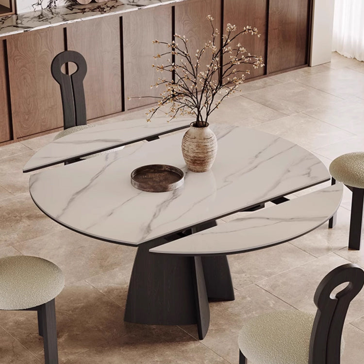 セラミックとアッシュ材の丸テーブル - 伸長式延長タイプダイニングテーブル|モダンデザインでおしゃれなリビングを演出! hagst-5363