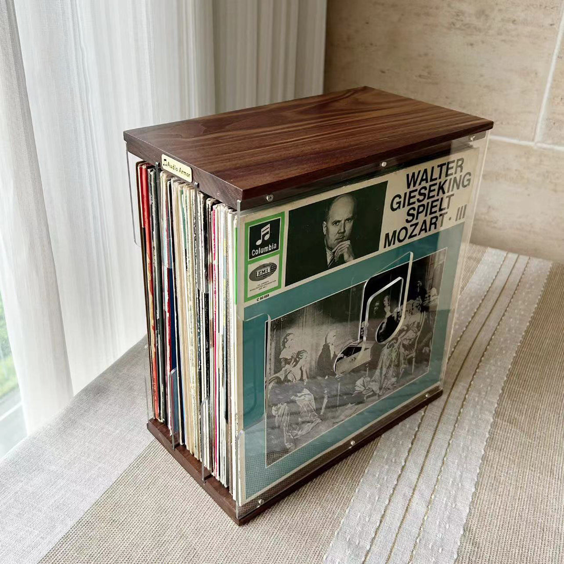 ブラックウォールナットとチェリー無垢材を使用した高級感あふれるLP収納ラックです。デスクトップに置けるコンパクトなデザインで、大切なレコードを美しくディスプレイしながら整理できます。耐久性に優れ、長く愛用できる逸品。音楽好きの方に最適な収納ソリューションです。