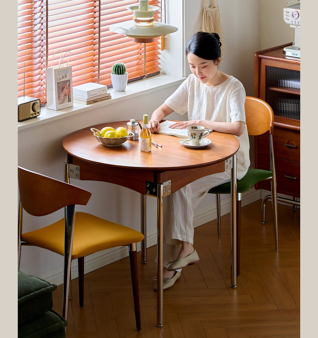 ダイニングテーブル 折りたたみテーブル 伸縮式収納キャビネット付き 省スペース収納G4-7230