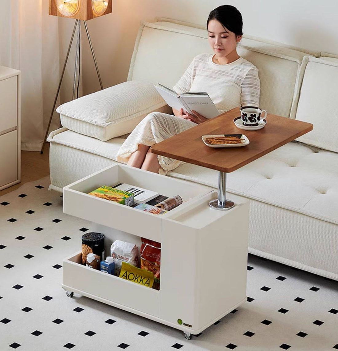 3WAY 昇降式 サイドテーブル 折りたたみ昇降式 ローテーブルダイニングテーブル ワゴンhzzjj-7233