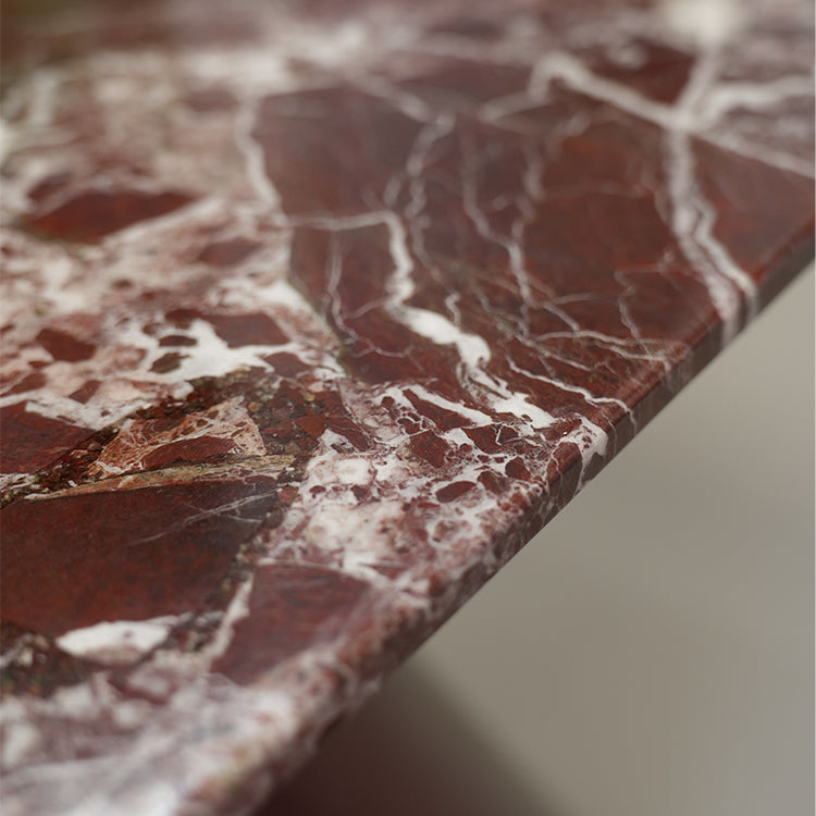 天然大理石を使用した260cm×100cmのダイニングテーブルです。ベトナレッドの深みのある赤色大理石が、モダンで洗練された空間を演出します。高級感あふれるデザインと耐久性を兼ね備え、家族や友人との食事の時間をより特別なものに。金属脚の組み合わせで、contemporary styleを実現。毎日の食卓を上質な雰囲気で包み込む、こだわりのダイニングテーブルです。