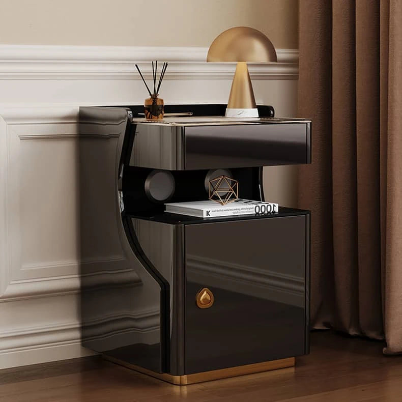 高級チェリー材と強化ガラスを使用したスタイリッシュなデザインのナイトテーブルです。丈夫な多層板の作りで長くお使いいただけます。銅の取っ手と足部分が高級感を演出し、書物やアクセサリーの収納にも最適です。どんなインテリアにもマッチし、夜のリラックスタイムを豊かに彩ります。