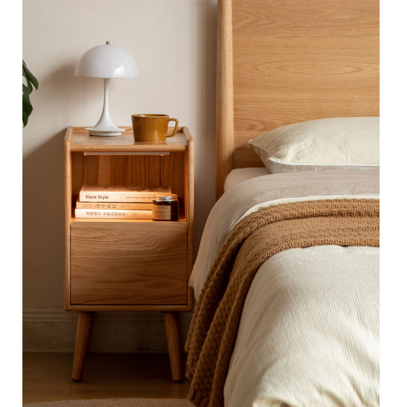 ナイトテーブル サイドテーブル オーク無垢材隙間収納 LEDライト別途購入 Y83A04