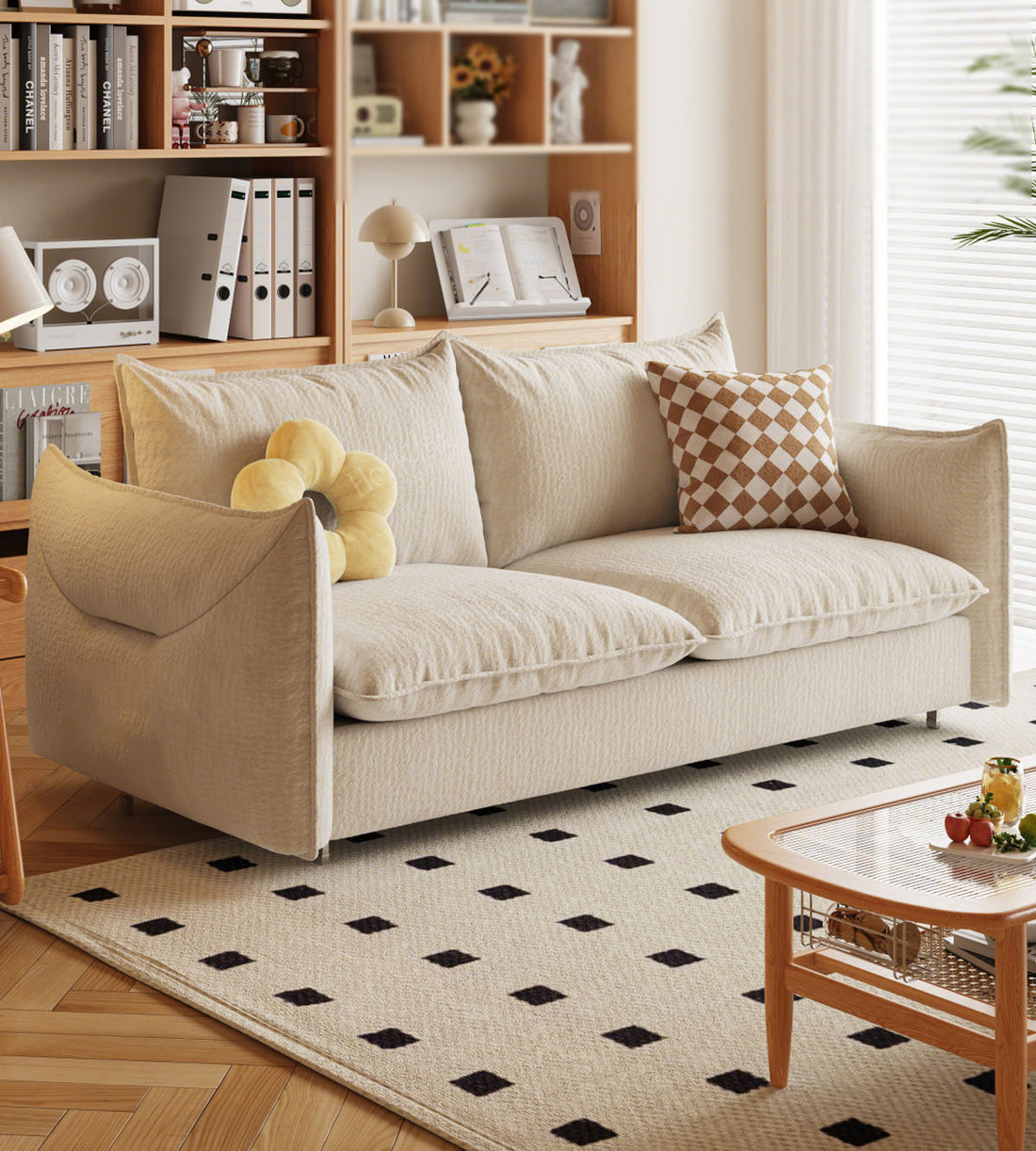 北欧デザインが魅力のソファーは、シープボア生地を使用し、温かみと上質な触り心地を実現。リビングの主役として、快適さと洗練された雰囲気を演出します。日常のくつろぎ時間を、優雅に彩る一台です。
