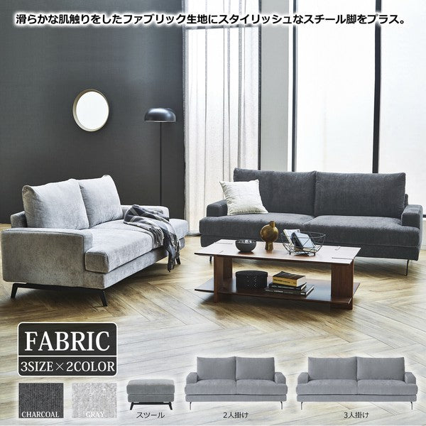 スタイリッシュに空間を引き締める。圧迫感のないモダンソファ&スツール。「Elena(エレーナ)」は、モダンで洗練された空間を演出するスチール脚付きソファ。背と肘の高さを低めに設計し、すっきりとした印象に仕上げました。空間に広がりをもたらし、圧迫感を感じさせないのが特長です。座面の奥行きは590mmとゆったりしており、くつろぎ感も抜群。2人掛け、3人掛け、スツールの3タイプ展開で、リビングの広さやライフスタイルに合わせて選べます。張地は上質なファブリックで、フルカバーリング仕様。カバーは取り外してお手入れが可能なので、清潔に保てます。ロボット掃除機も脚下を通れる設計で、見た目だけでなく機能面も充実。グレー・チャコールの落ち着いたカラーは、ナチュラルからモダンまで幅広いインテリアにマッチします。【素材・仕様】本体構造:Sバネ、ウェービングベルト、ウレタンフォーム脚:スチール(高さ140mm)張地:ファブリック ※フルカバーリング仕様カラー:グレー、チャコール