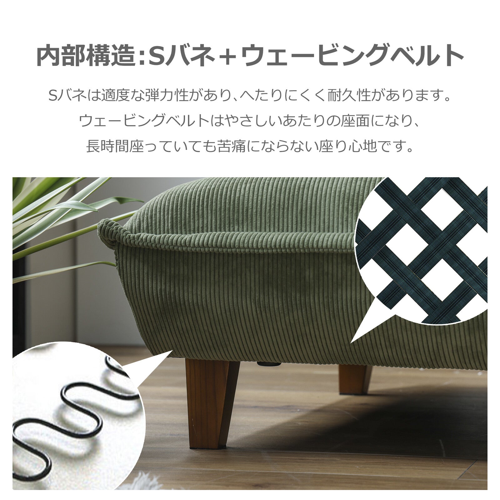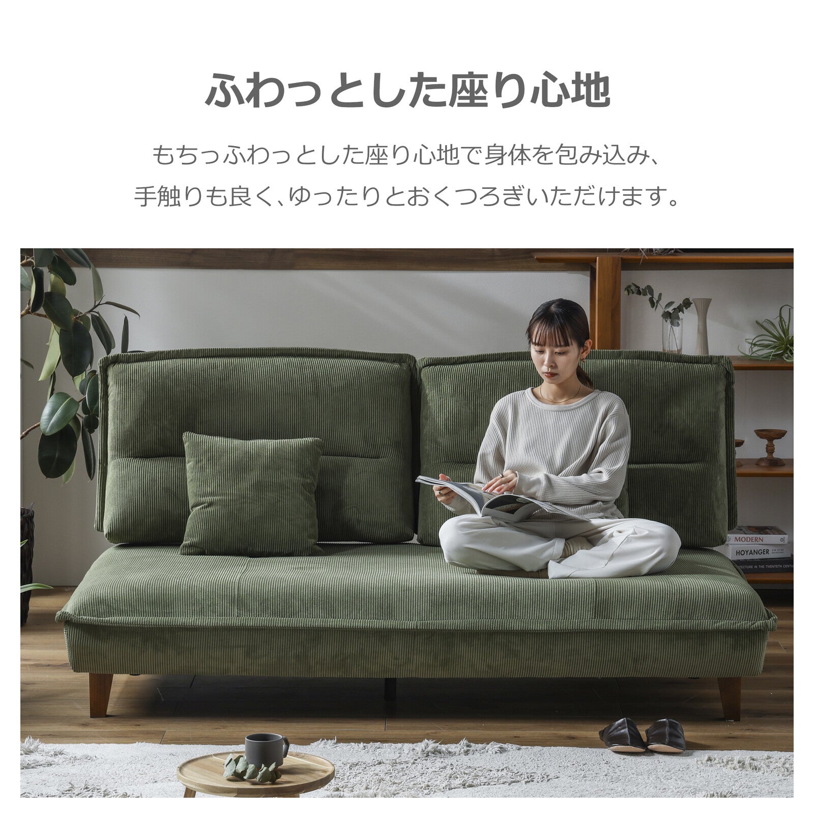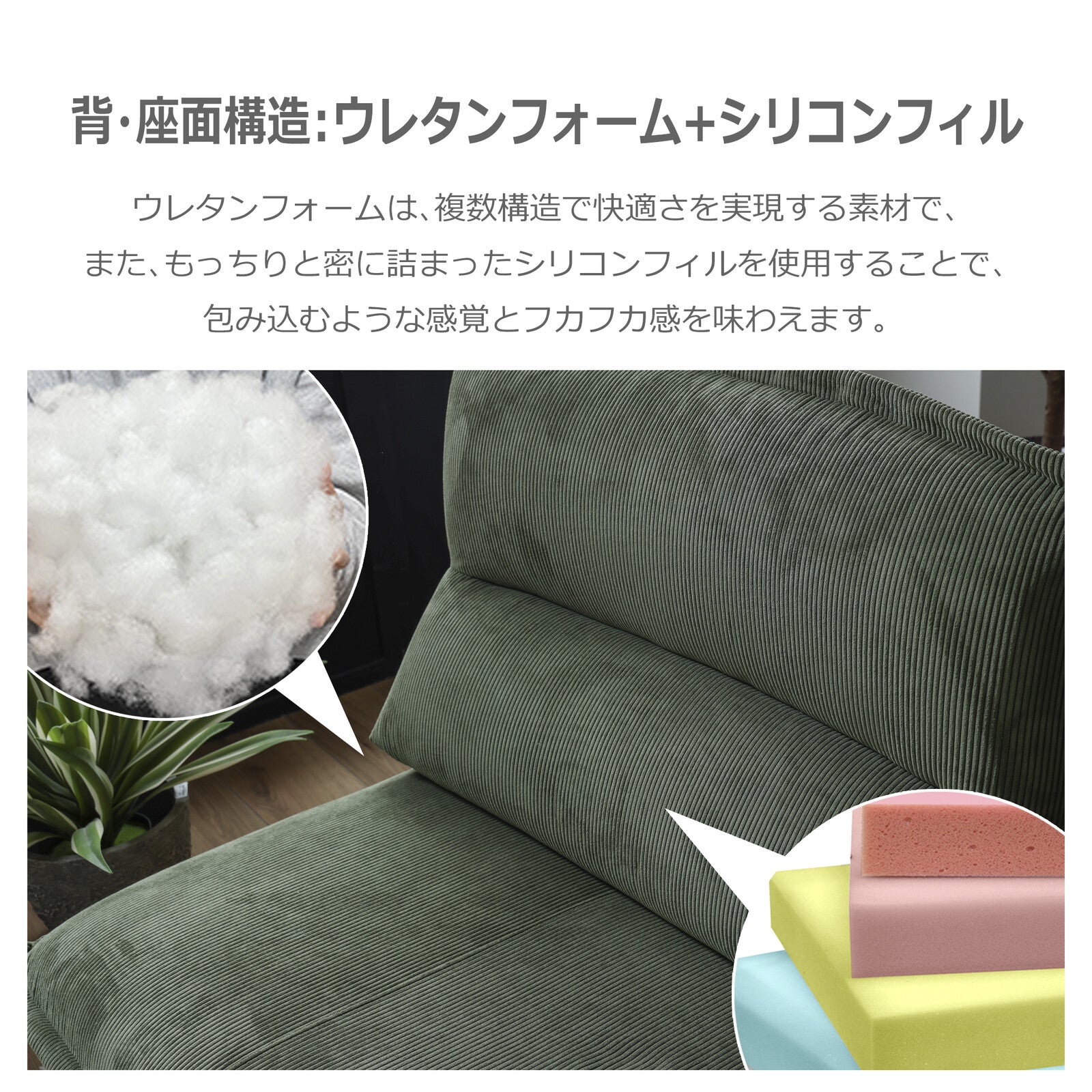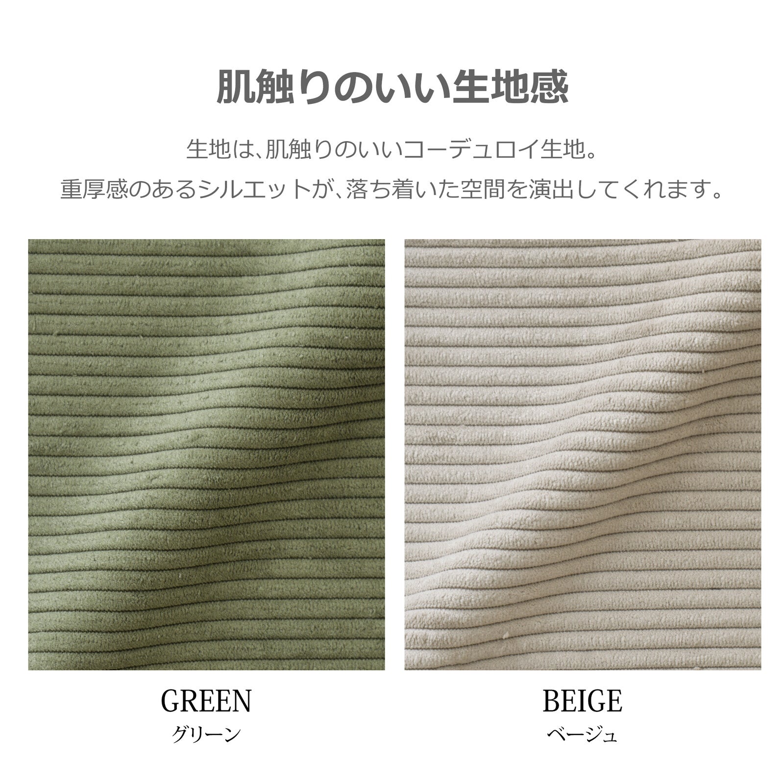 生地にはコーデュロイ素材を使用し、やさしい肌触りを実現。重厚感のあるシルエットが、落ち着いた空間を演出します。