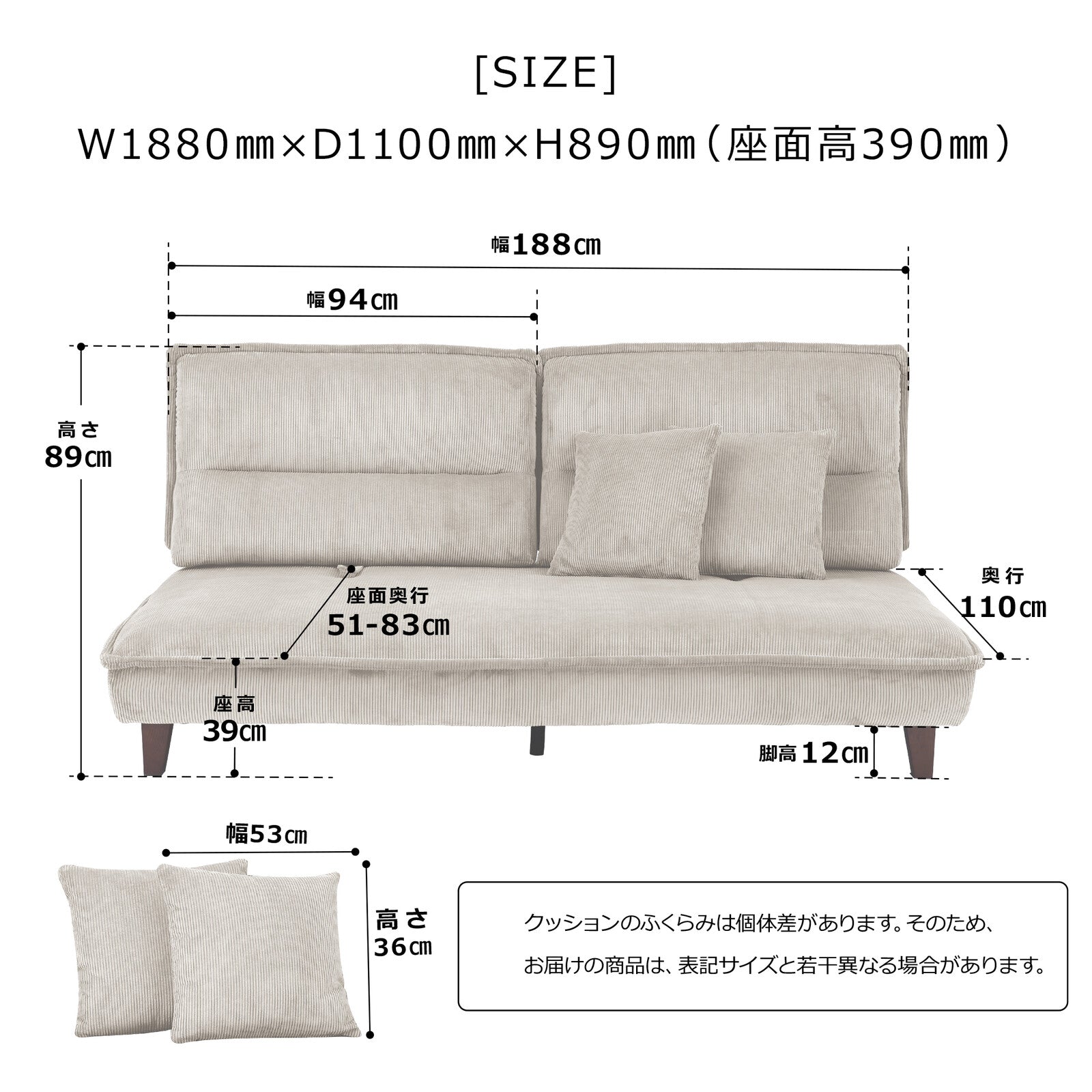 製品により表示サイズが実物と多少異なることがあります。表記サイズにおいて±3~5cm程の誤差が生じる場合があります。