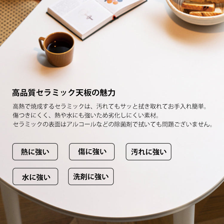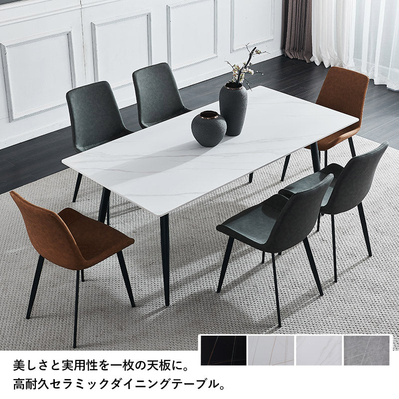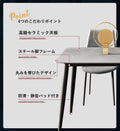 天然鉱物を高温で焼き上げた高品質セラミック天板を採用した、モダンダイニングテーブルです。傷・熱・汚れに強く、毎日の使いやすさと上質なデザインを両立させました。大理石調の洗練された見た目で、どんなインテリアにも調和します。