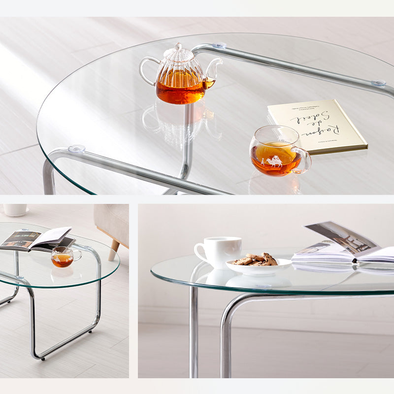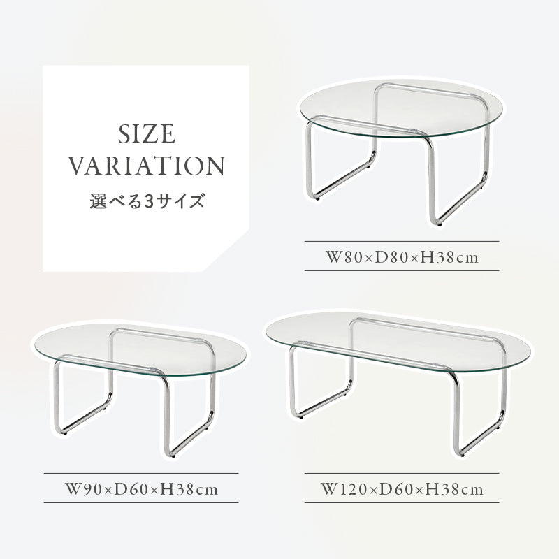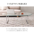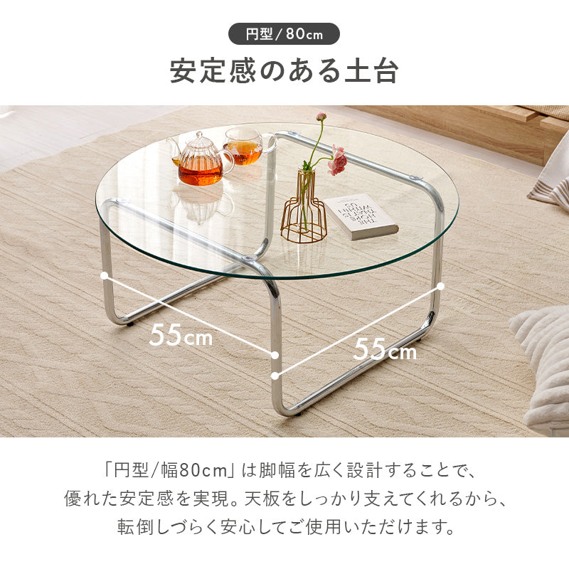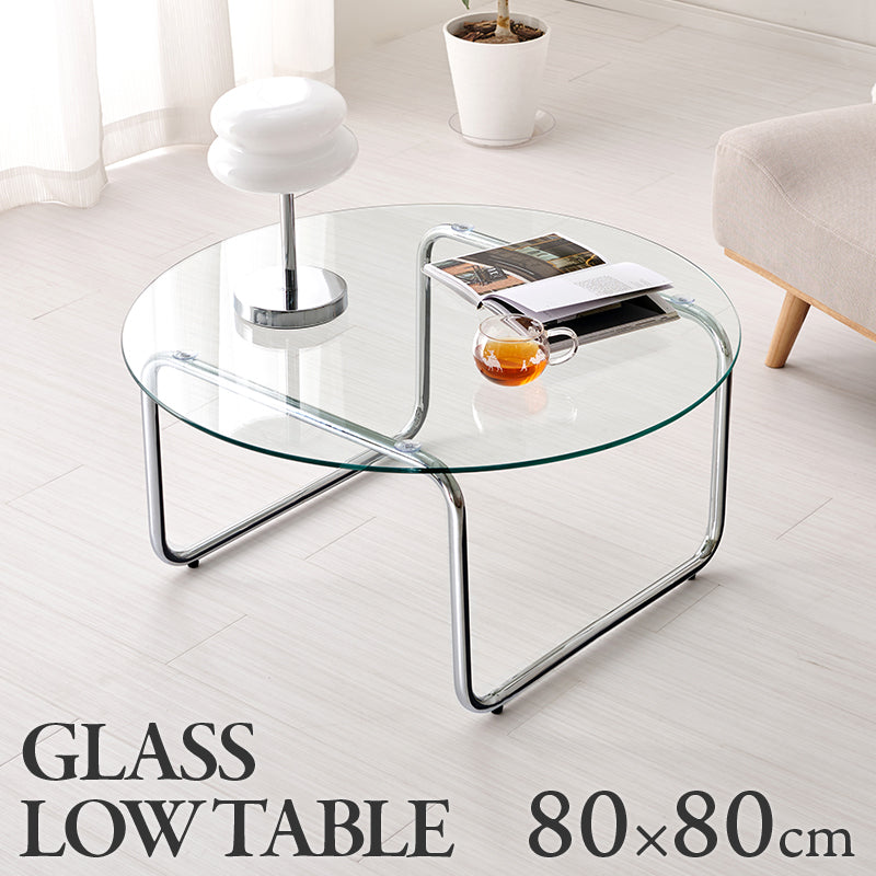 透明感のあるガラス天板と上品なシルバー脚が調和し、シンプルながら洗練された存在感を放つガラステーブルです。どんな空間にも馴染みやすく、上質な雰囲気を演出します。