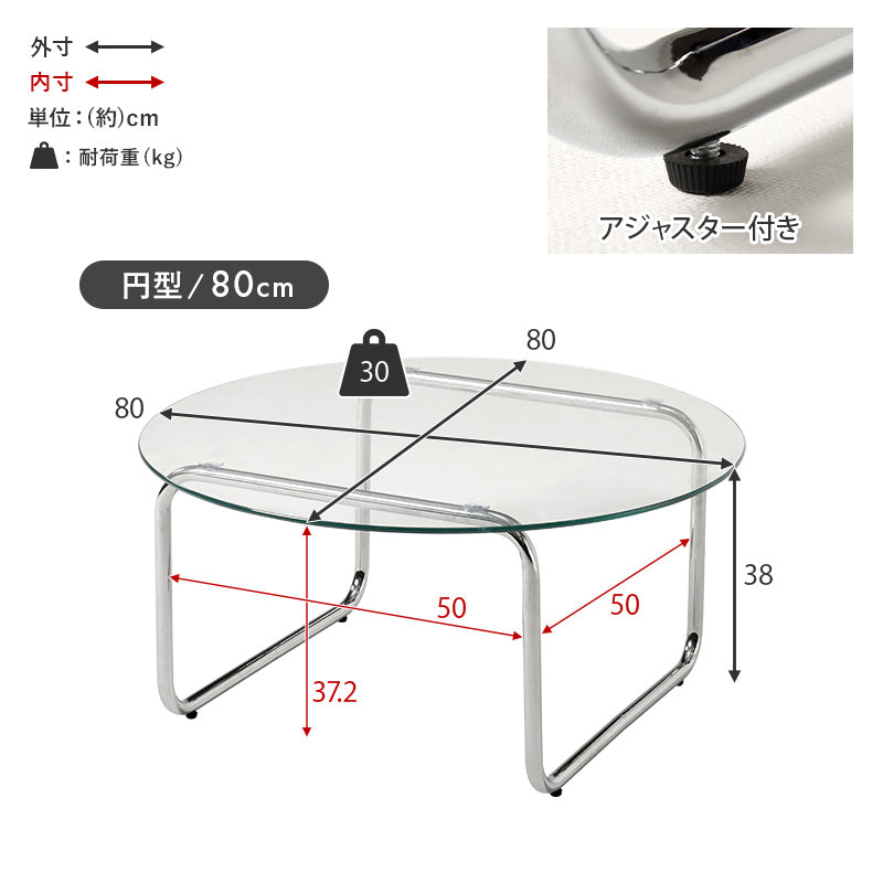 素材 | 天板:8mm強化ガラス、脚部:スチール |