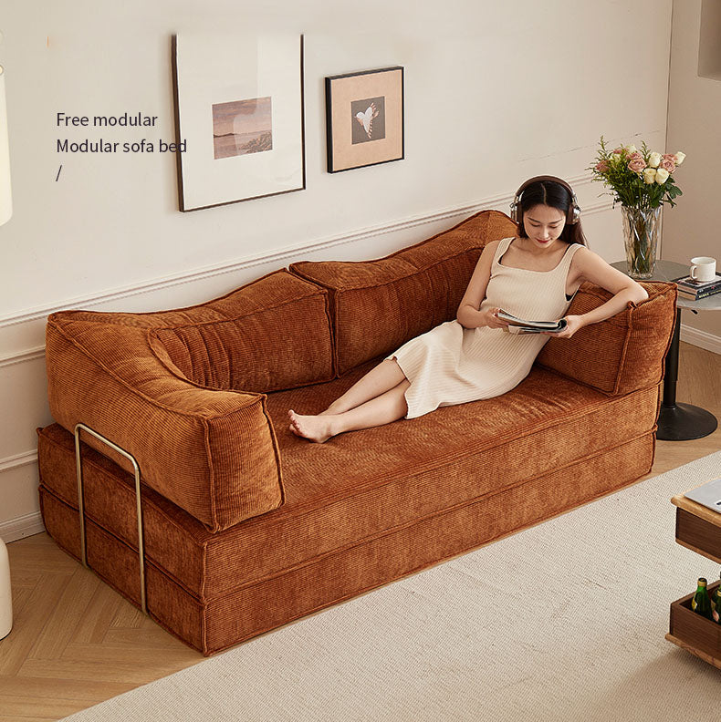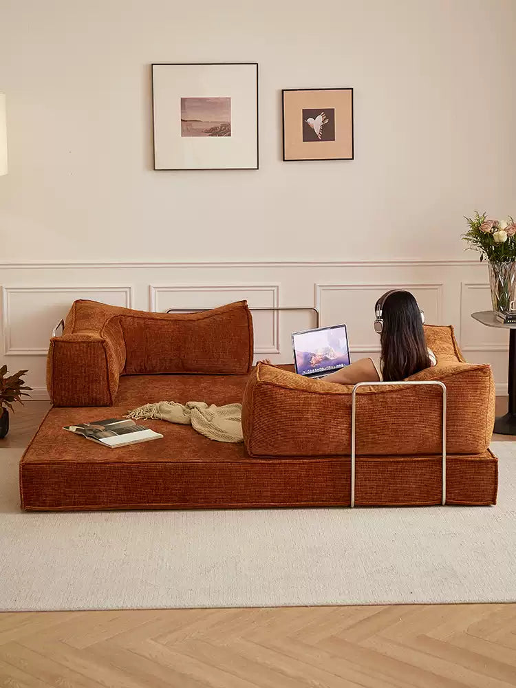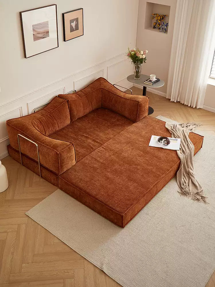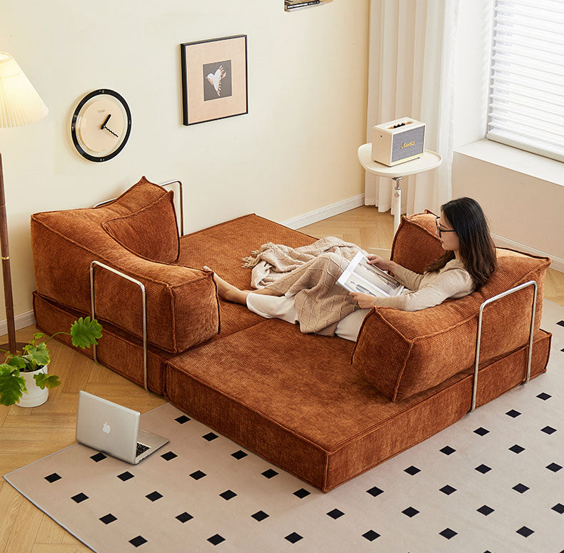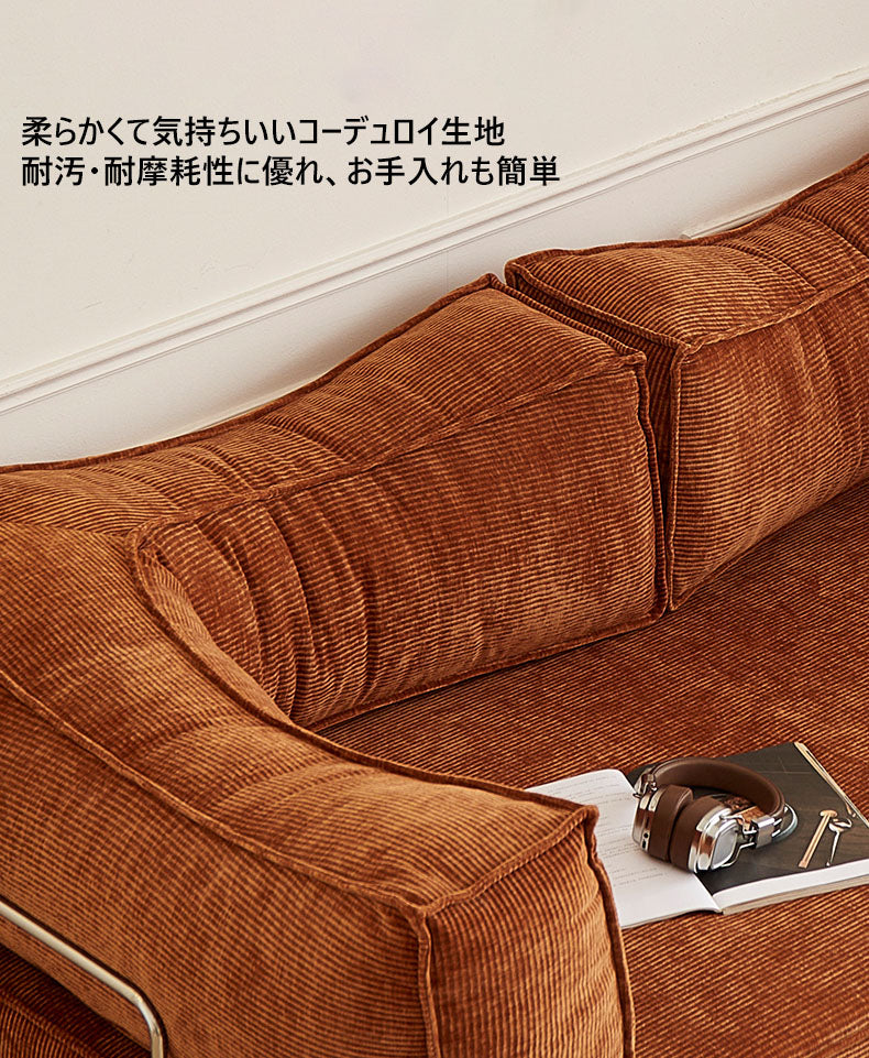 上質なコーデュロイファブリックと耐久性に優れたステンレスフレームで、長く愛用できます。高反発ウレタンとシリコンフィルの詰め物が、ソファとしての快適な座り心地、ベッドとしての支持性を両立。圧縮梱包でコンパクトに届き、お部屋のレイアウトに合わせて自由に配置できます。洗えるファブリックで清潔さを保ちながら、モダンなデザインがどんなお部屋にも馴染みます。