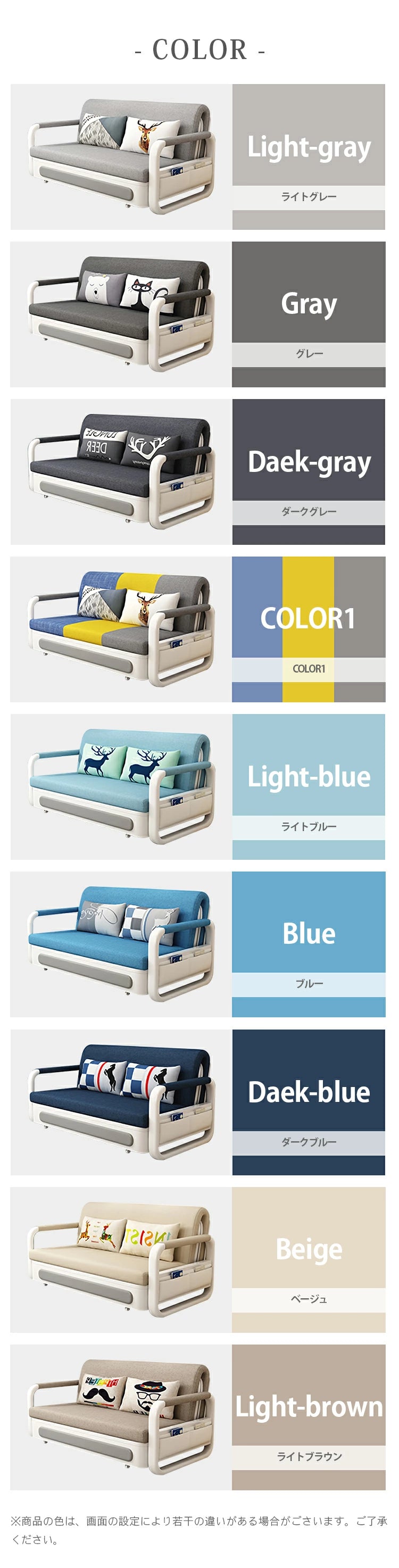 ソファとベッドが一つになった、暮らしに寄り添う多機能ソファベッド。幅88cm~188cmの5サイズと、ライトグレー、ライトブルー、グレー、ブルー、ベージュ、ダークグレー、ダークブルー、ライトブラウンの豊富なカラーバリエーションで、あなたのお部屋にぴったり合う一台が見つかります。折りたたみ機能で日中はコンパクトに、夜はゆったりベッドに変身。収納オプション付きなら、日用品もすっきり整理できます。韓国インテリアや北欧スタイルにも相性抜群。新生活や来客対応にも活躍する、おしゃれで実用的なソファベッドです。