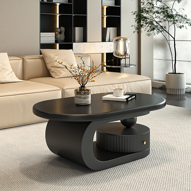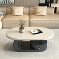 洗練された北欧モダンデザインのセンターテーブルです。幅100・120・130cmから選べる楕円形天板は高級感を演出。厚みのある木製フレームが重厚な存在感を放ち、引き出し収納でリビングをすっきり整理できます。新居への引っ越しや一人暮らし、マンション・一戸建てなど、どんなお部屋にも調和する上質なテーブルです。