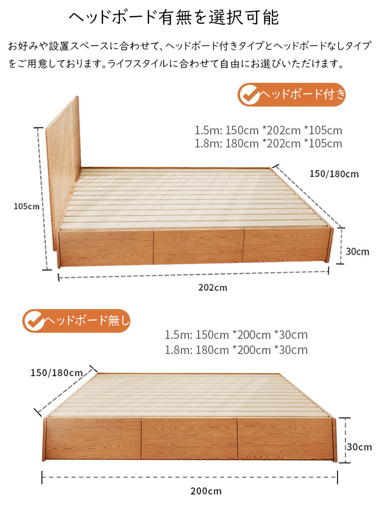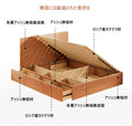 このベッドフレームは天然木を使用し、木の温もりを感じることができます。また、収納付きでお部屋のスペースを有効活用でき、跳ね上げ式なので使わない時はコンパクトに収納できます。快適な眠りとスペースの有効活用を実現します!