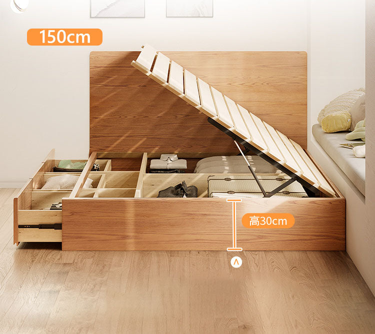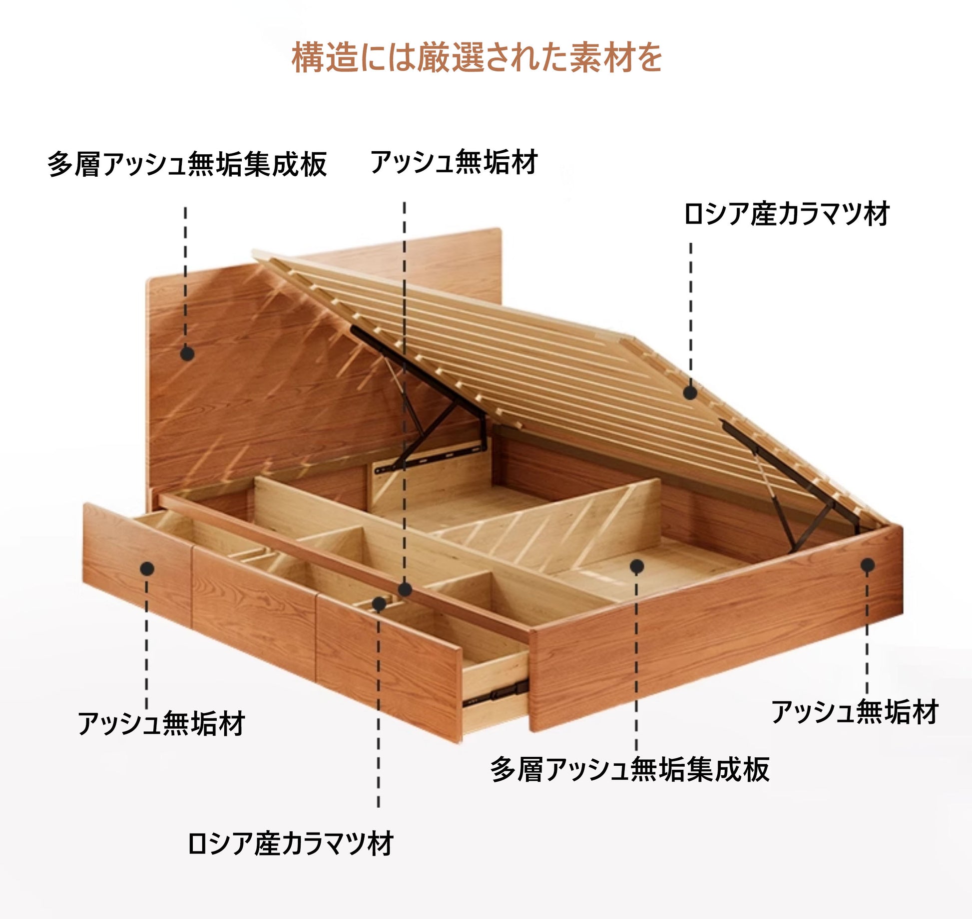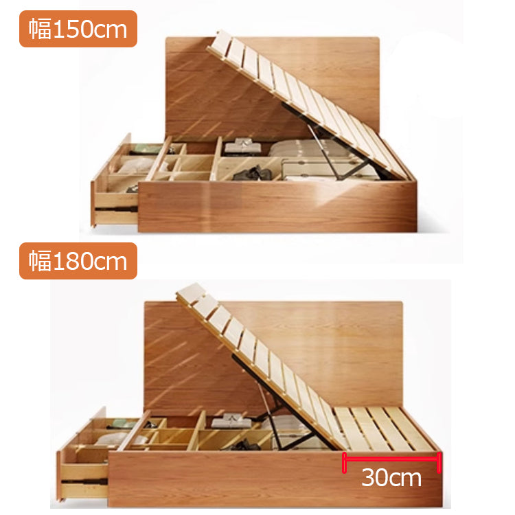 ベッドフレーム単品 天然木収納付き 跳ね上げ式収納ベッド fjjj-1657