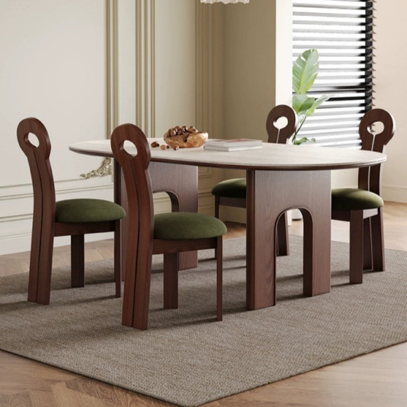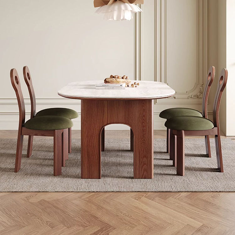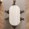 ベージュカラーのセラミック製ダイニングテーブル 半円リビングテーブル fjx-2632