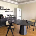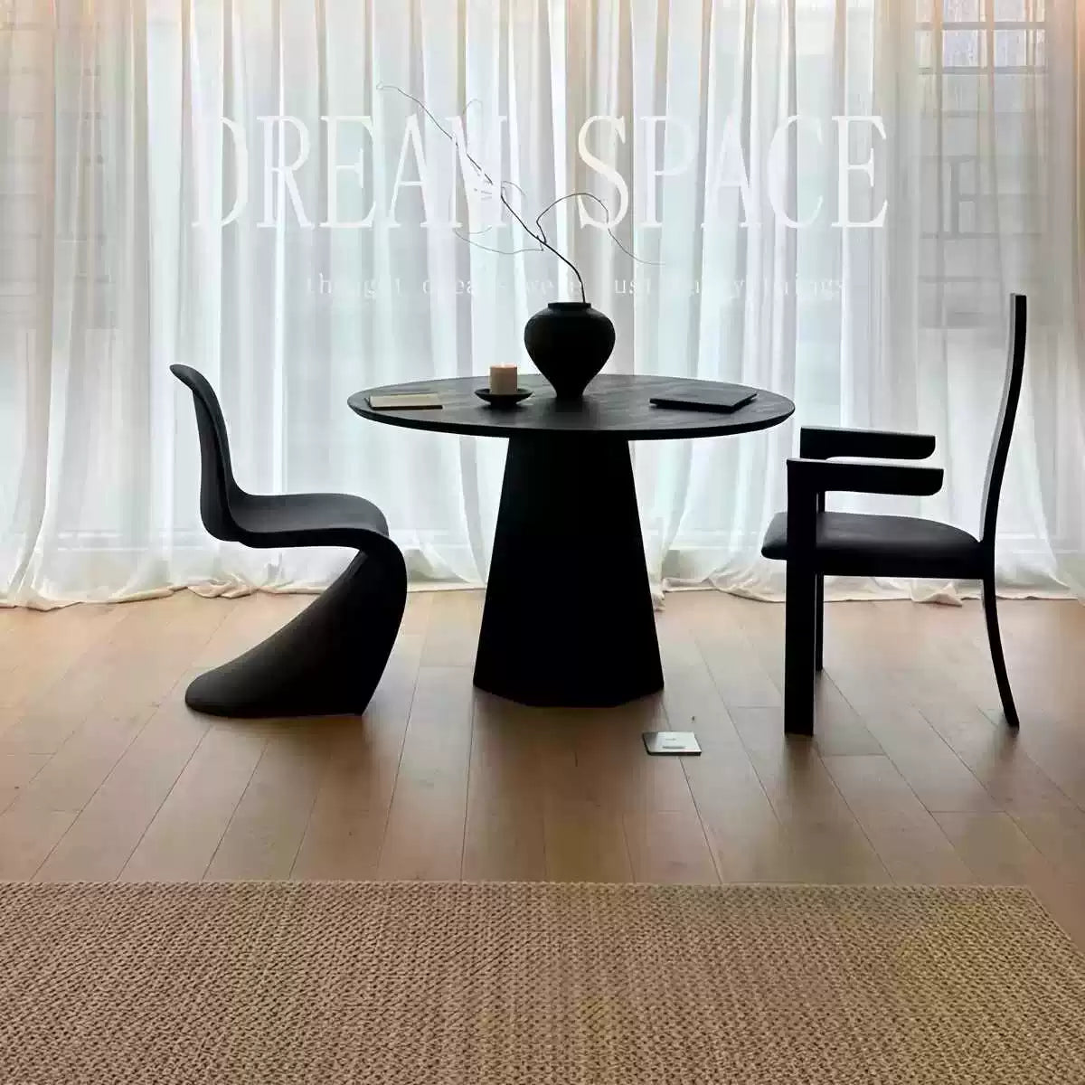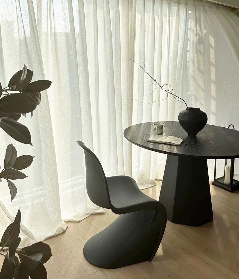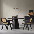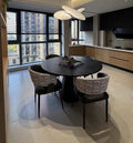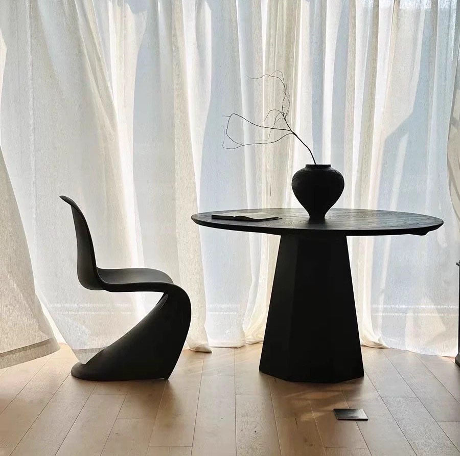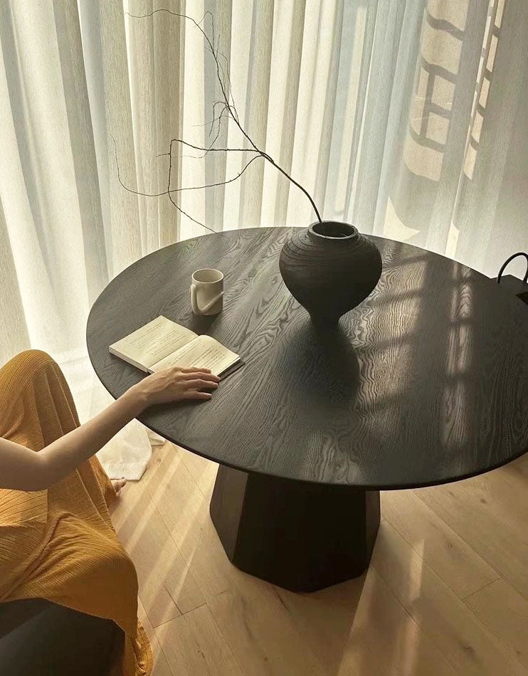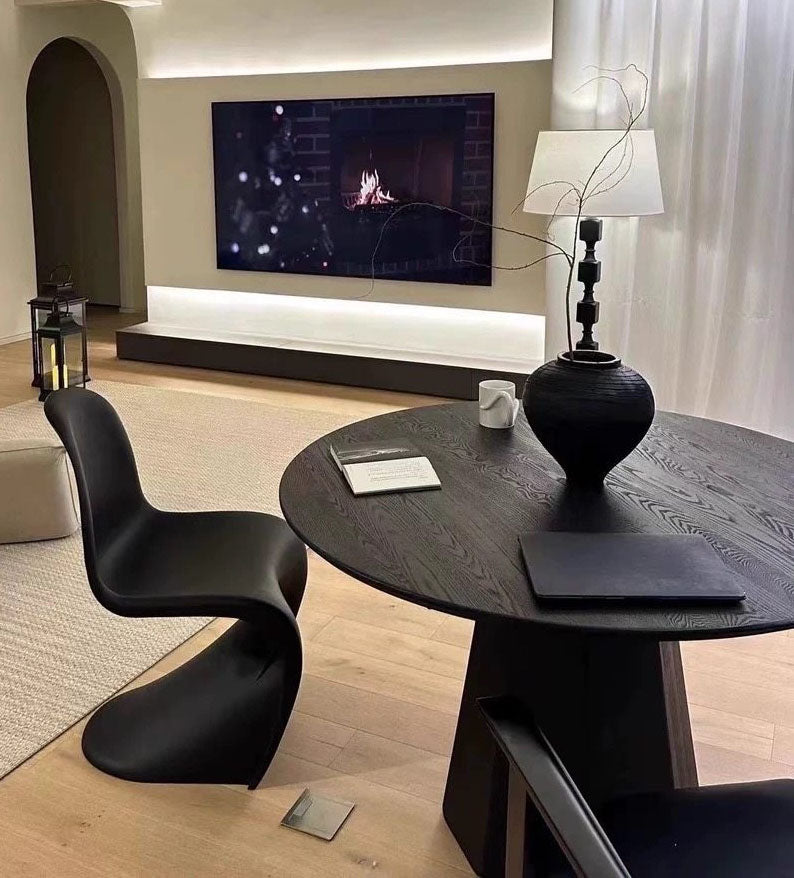 北欧デザインの洗練された丸テーブルです。上質なアッシュ材を使用した天板は、深みのあるブラック仕上げで、どんなインテリアにも調和します。円形のフォルムは空間を柔らかく見せ、家族や友人との会話をより親密にします。ダイニングルームはもちろん、リビングやカフェスペースにも最適。耐久性に優れた素材感と洗練されたデザインで、毎日の食卓をより豊かに彩ります。
