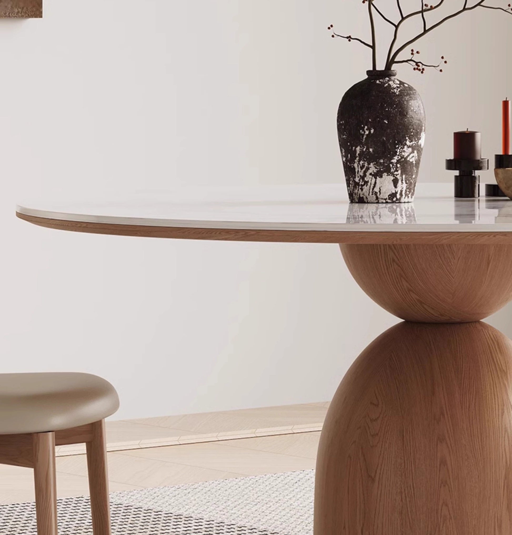 円形テーブルダイニングテーブル丸テーブルセラミック&アッシュ材脚 fjx-emt-052