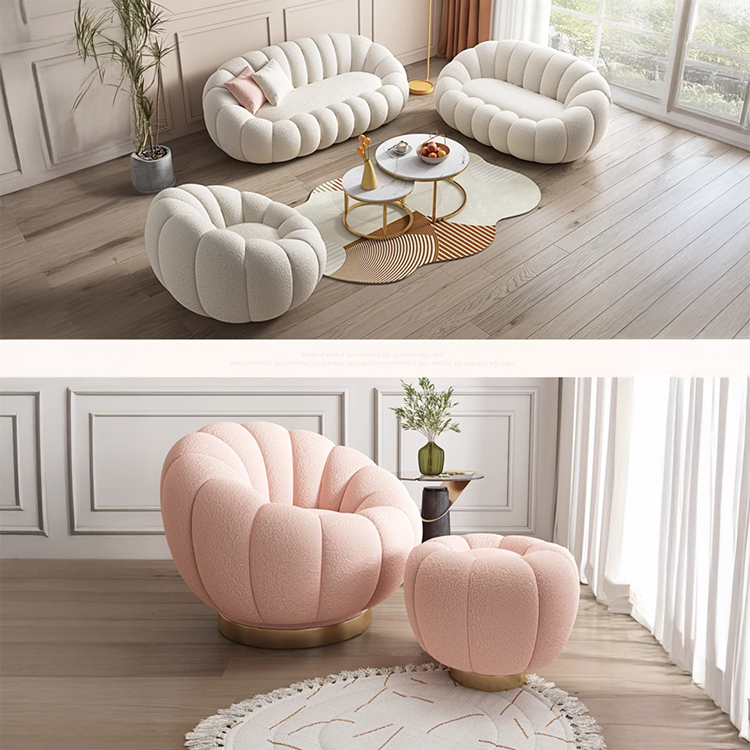 ソファチェア スツール 回転可能タイプパーソナルチェア 天然木フレーム&シープボアポ生地のローソファーチェアfkdsm-924
