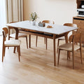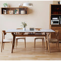 セラミック天板は耐熱性と耐摩耗性に優れ、熱い食器も安心して置けます。光沢のある仕上げが高級感と清潔感を演出し、ガラスのアクセントが空間を広く見せる効果を持ちます。アッシュ材のフレームと脚部は自然な温もりを与え、多層板構造により安定性と耐久性を確保。ミッドセンチュリーモダンの流線型デザインで多様なインテリアに調和し、4人が快適に使用可能。汚れに強く手入れも簡単なため、日常使いに最適です。