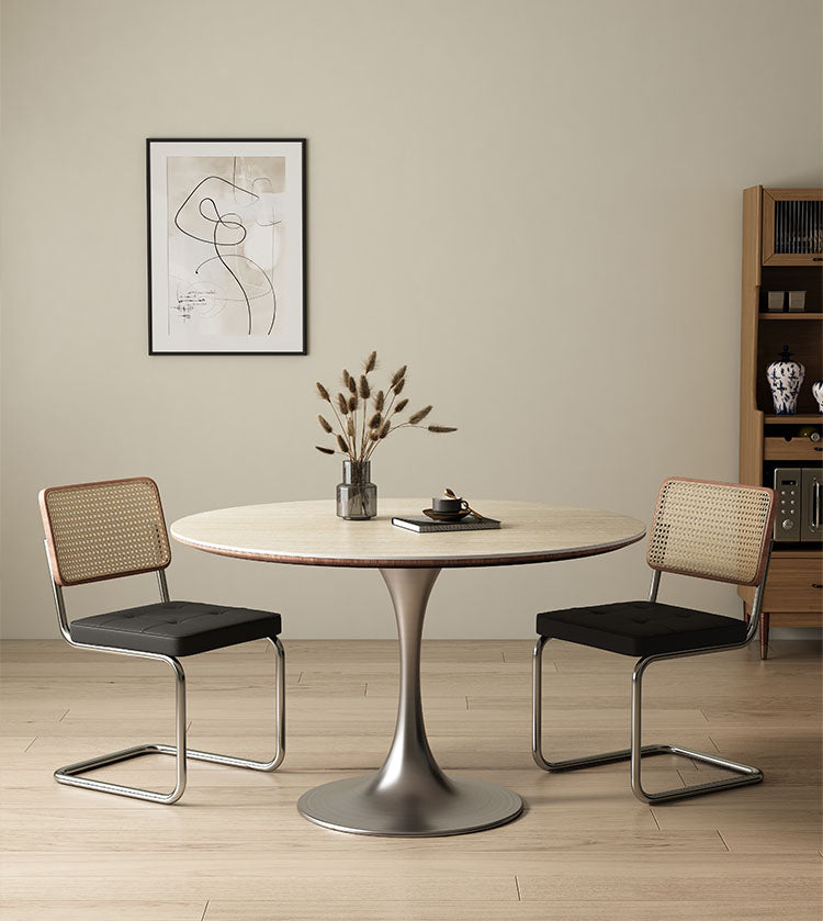洗練されたシンプルデザインのステンレス脚丸テーブル。カフェ空間にぴったりのスタイリッシュなフォルムが、上質な雰囲気を演出します。耐久性の高い素材とコンパクトなサイズで、使い勝手も抜群。機能美と美しさを兼ね備えた一台です。