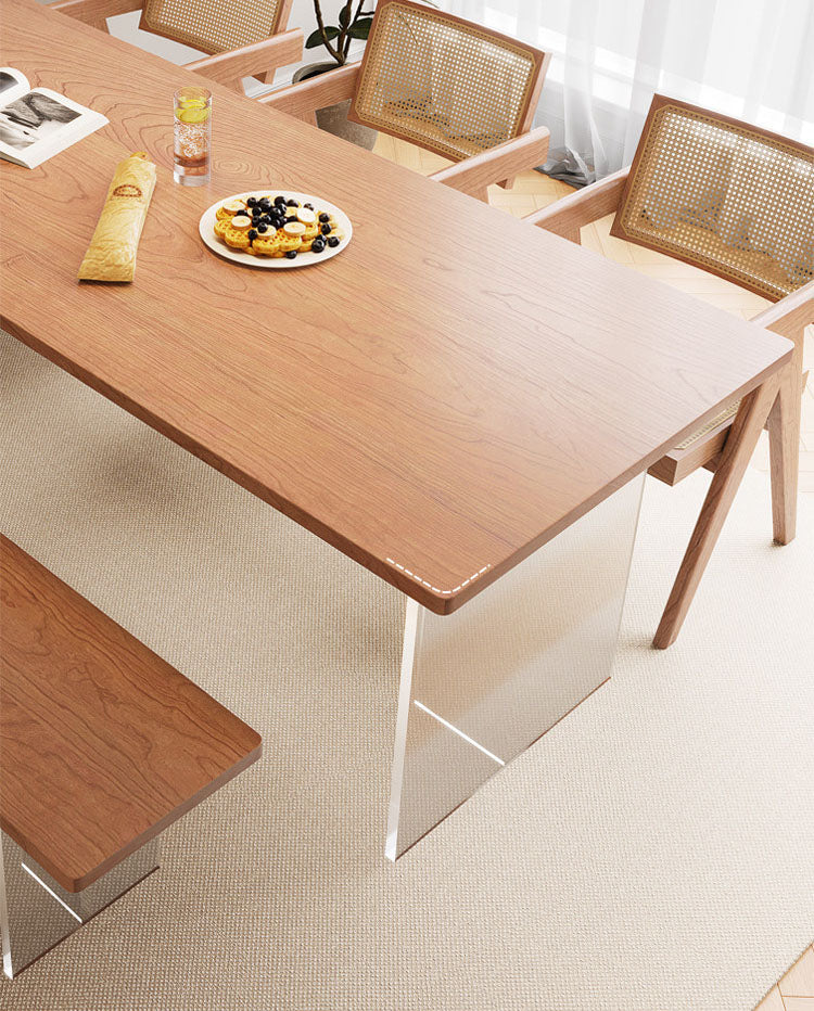自然な温かみがあるチェリー材と透明感のあるアクリルの組み合わせが美しいテーブル。洗練されたデザインでお部屋を格上げし、特別な空間を演出します。万能でありながらも主役になれるテーブルは、モダンなライフスタイルにぴったり。一日の生活に彩りを添えること間違いなしです。