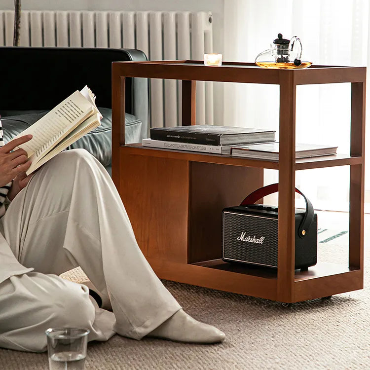 このサイドテーブルのワゴン収納は、シンプルで上品なチェリー材の質感が魅力的です。無垢材を使い頑丈に作られ、長くお使いいただけます。セラミックの天板で大人の洗練を感じ、遊び心あふれるデザインでモダンな空間を演出します。ケヤキ材の美しい木目が特別感を与え、見るたびにうっとりさせます。
