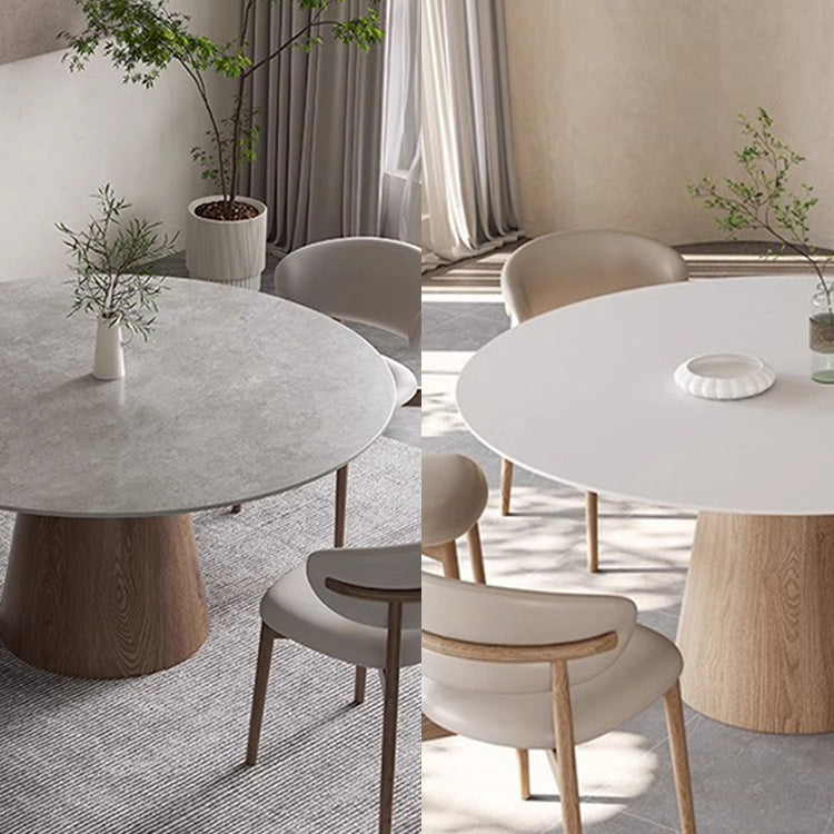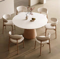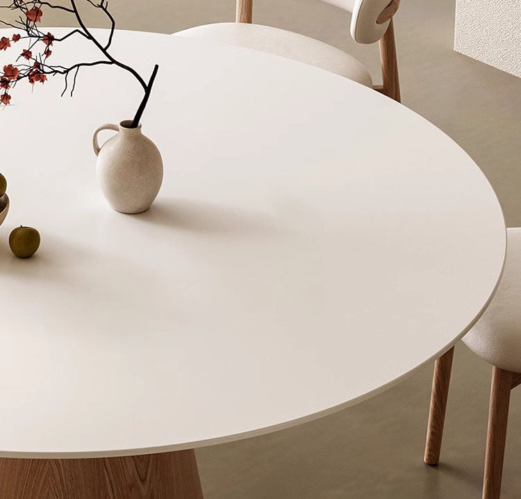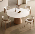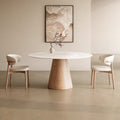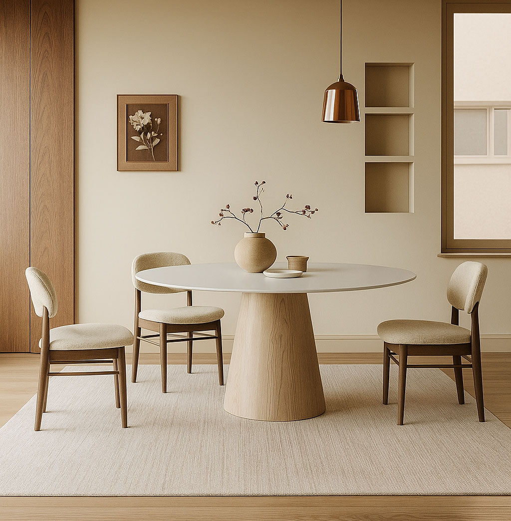セラミックの質感と無垢材の木目を活かした、オシャレで実用的なダイニングテーブルです。丸い形がお部屋に優しい印象を与え、快適な食事や家族の団らんの場を提供します。