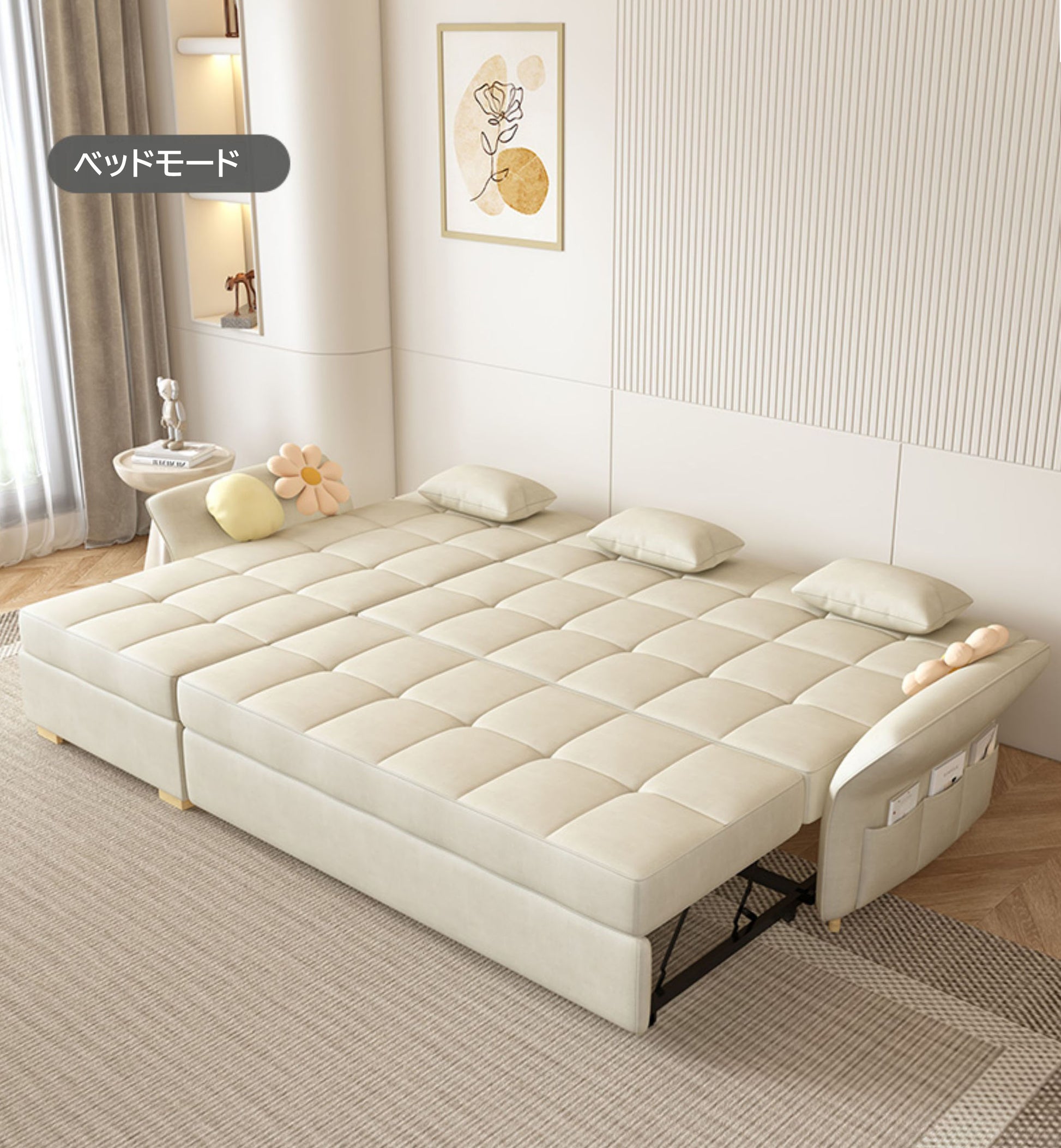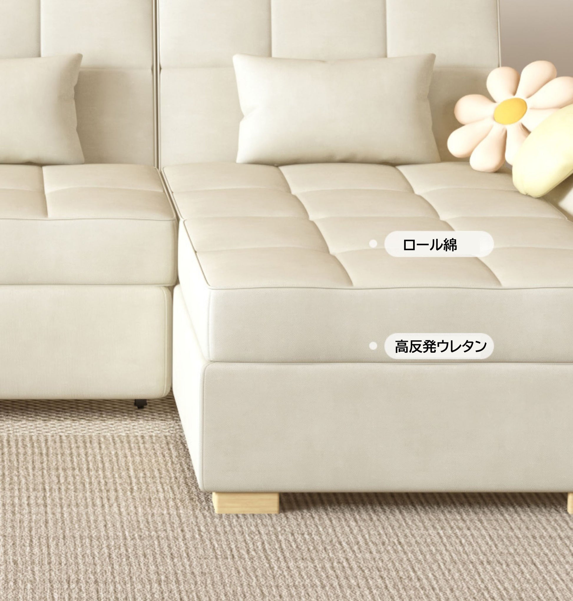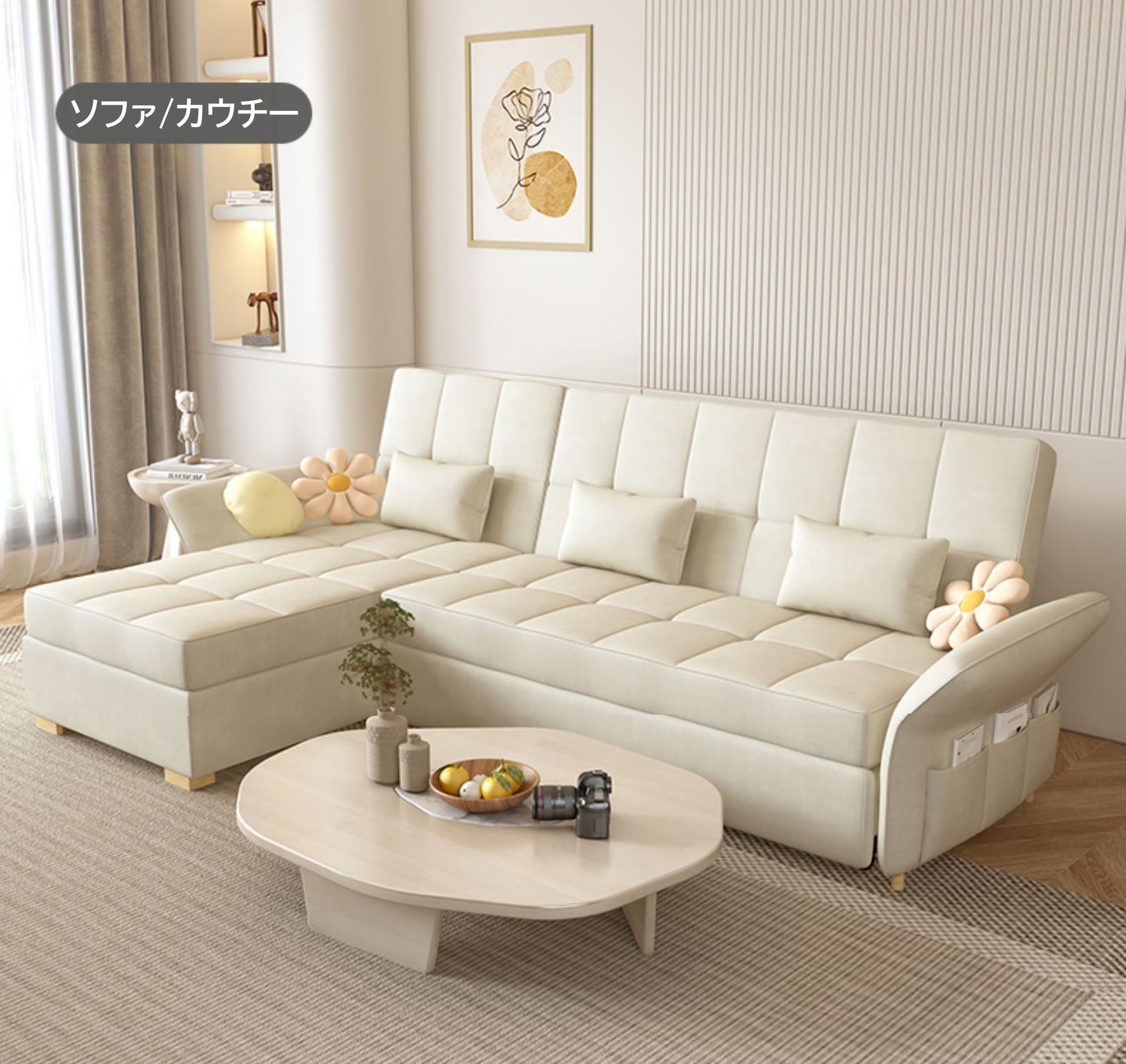 洗練された北欧モダンデザインのカウチソファベッドです。エアレザー素材で高級感を演出しながら、お手入れも簡単。幅225cm~285cmの3サイズから選べ、3~4人掛けに対応します。下部の収納スペースで生活用品をすっきり整理でき、付属クッションでくつろぎを一層引き立てます。ボリューム感のある座面がリビングやホテルロビーの空間を格上げ。快適さと機能性を兼ね備えた、長く愛用できるソファベッドです。