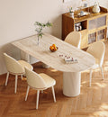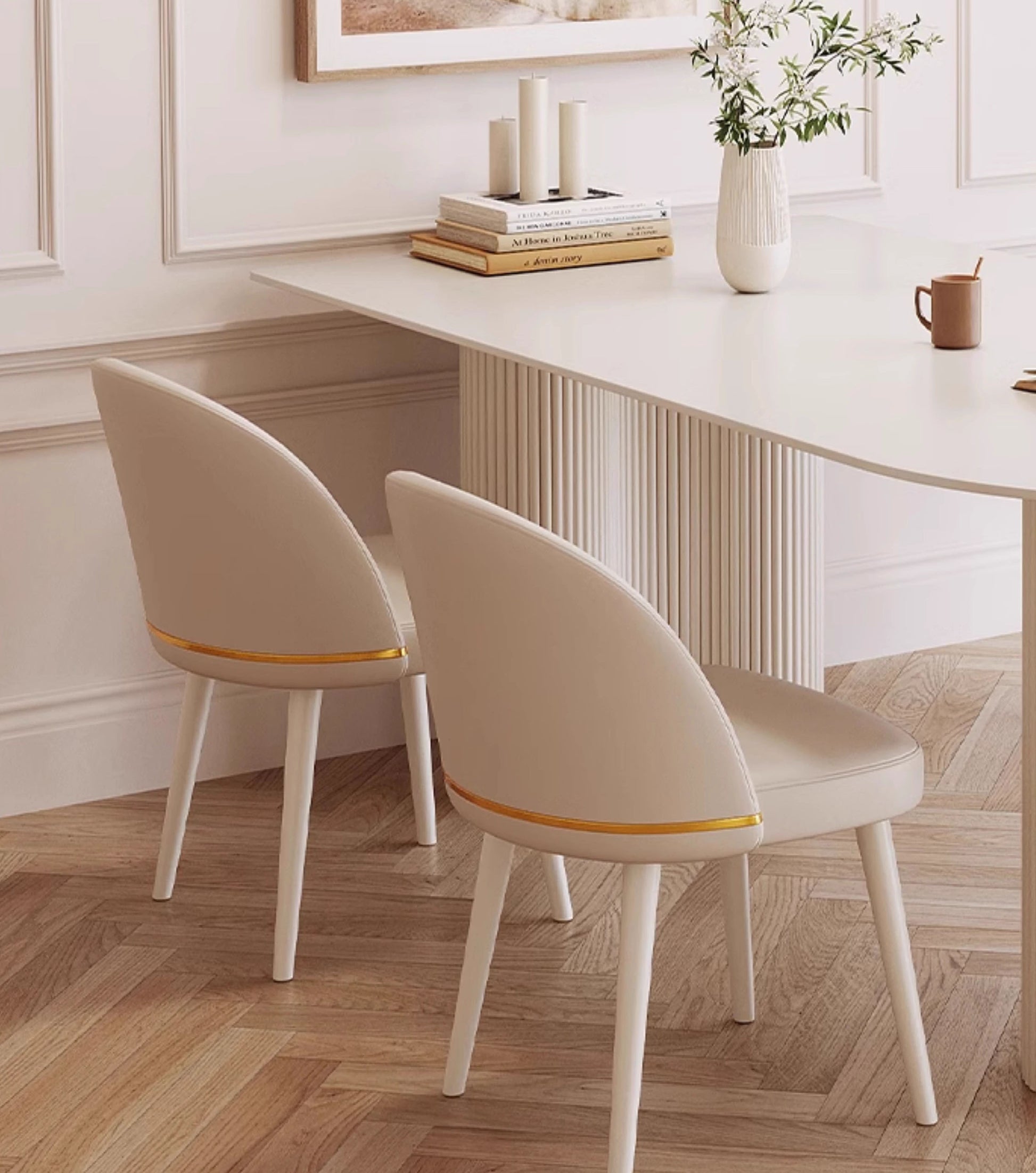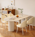 上品なベージュの艶消し仕上げが美しいテーブル。耐久性に優れたセラミック天板と、安定感のあるスチール製の金属脚を組み合わせ、高級感と機能性を両立しました。洗練されたデザインで、モダンな空間に自然と調和します。
