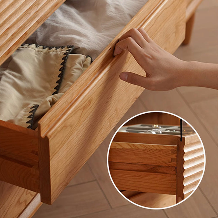 チェリー材の温かみとガラスの洗練された透明感が見事に調和した高級キャビネット。細部までこだわり抜かれたデザインは、どんなお部屋にも上品な雰囲気を演出します。実用的な収納力と美しさを兼ね備え、長く愛用できる逸品です。あなたの日常をより豊かに彩る、エレガントなインテリアアイテムをぜひお楽しみください。