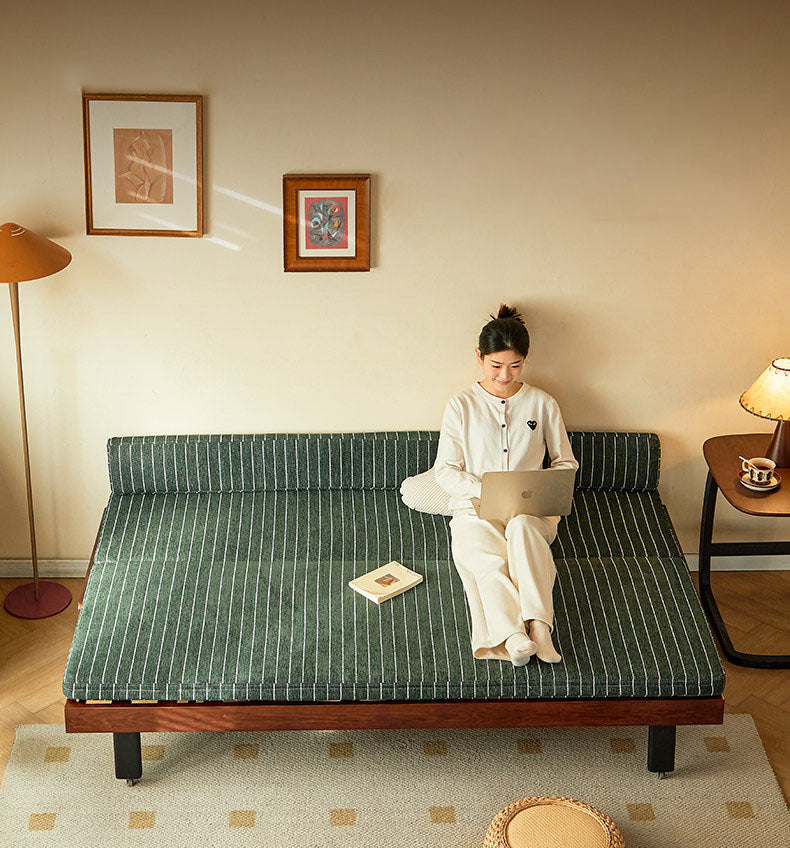 限られたスペースを最大限に活用したい方に最適なソファベッドです。折りたたみ式で伸長機能を備えているため、普段はコンパクトなソファとして、来客時にはゆったりとしたベッドへと変身します。一人暮らしの部屋でも邪魔にならず、急な泊まり客にも対応できる頼もしい家具。シンプルで使いやすい設計だから、毎日のライフスタイルにすんなり溶け込みます。限られた環境でも快適さを諦めたくないあなたの味方です。
