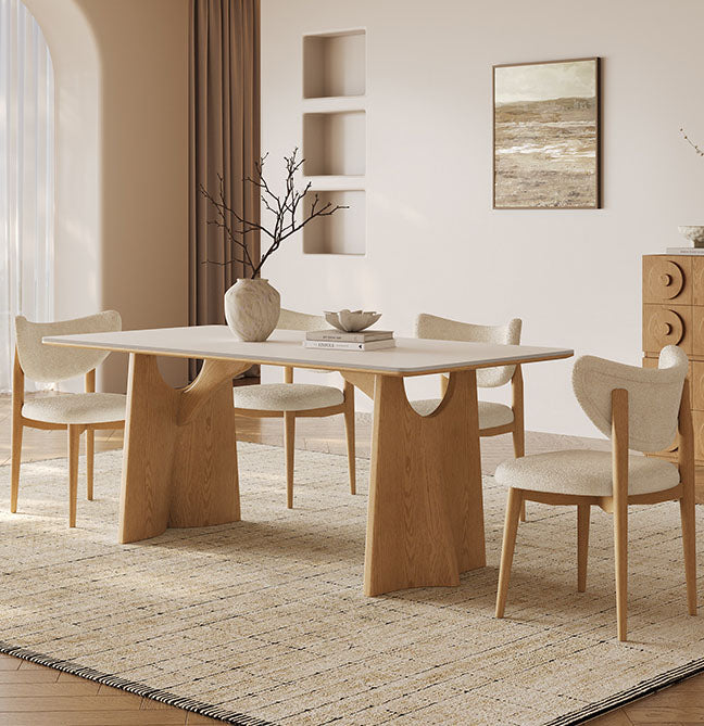 ジャパンデイ家具のダイニングテーブルは、高品質なセラミック製天板を採用し、ベージュ・ホワイト・グレーのモダンなカラーバリエーションで空間を洗練された印象に仕上げます。耐久性に優れ、汚れや熱に強いため、日々の使用でも美しさを保ちます。シンプルながら存在感あるデザインは、どんなインテリアにも調和し、上質な食卓空間を演出します。