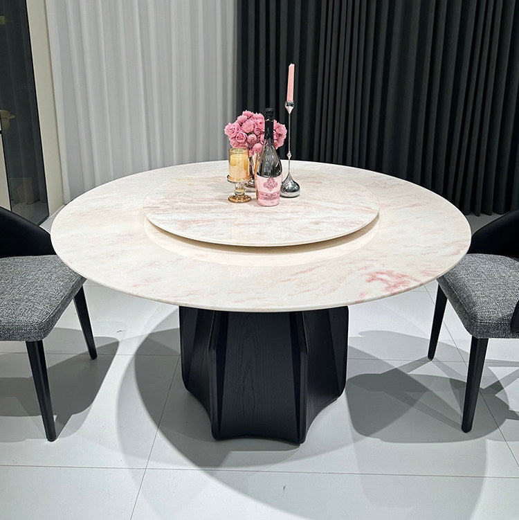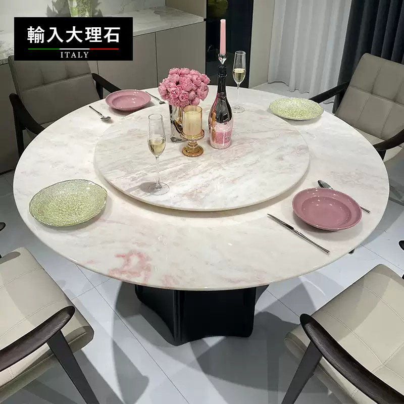 薄いピックのラグジュアリー天然大理石テーブル | 無垢材脚付き円形丸テーブル |hbso-9002