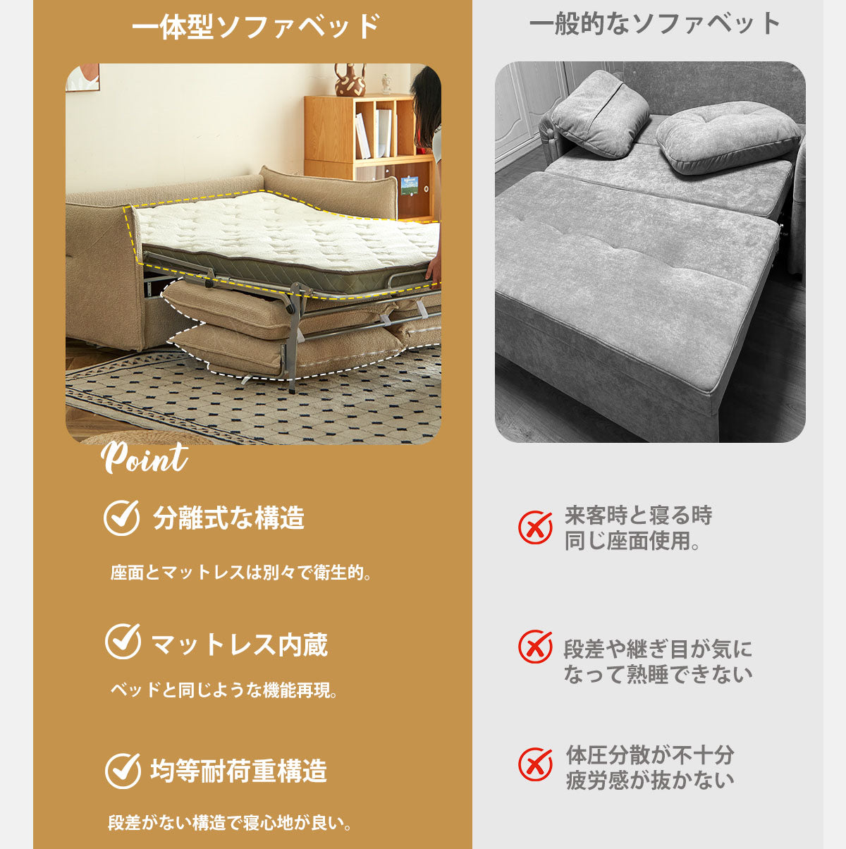 新作オリジナルデザインのソファベッド「hemw-5934」は、内蔵マットレスを採用し、従来のソファベッドとは一線を画す快適さを実現。日常使いのソファとしても寝具としても優れた機能性を発揮し、省スペースでありながら質の高い休息を提供します。洗練されたデザインと実用性が融合し、あらゆる空間に調和する一台です。