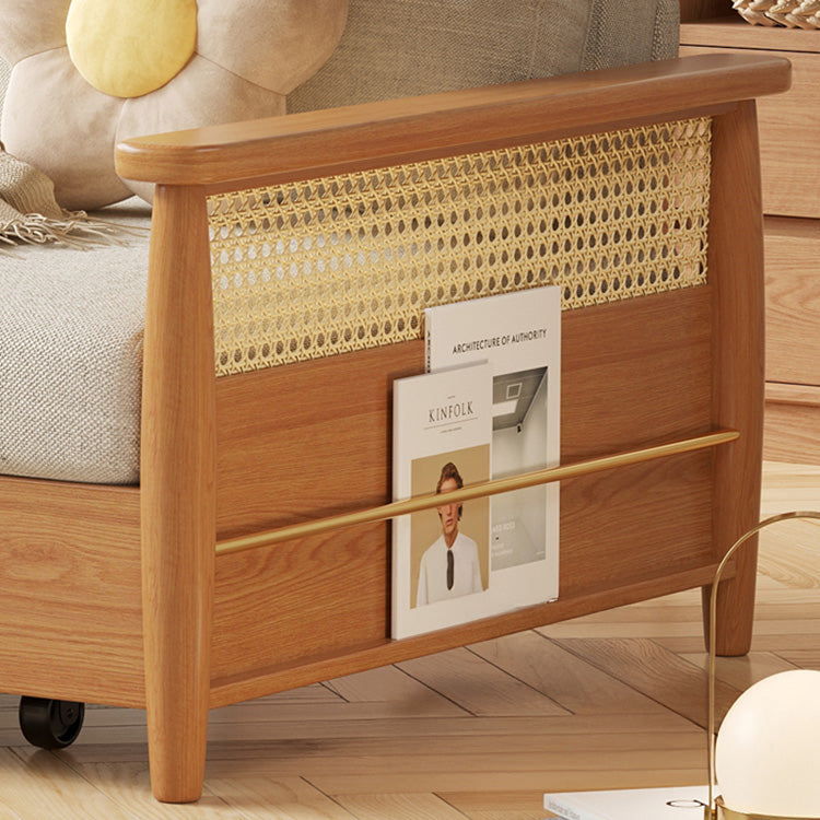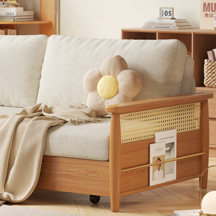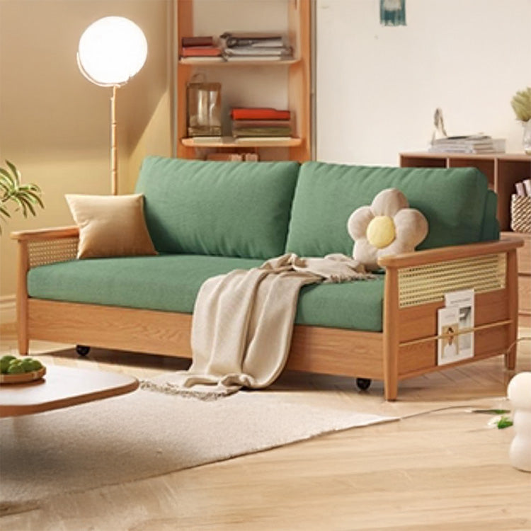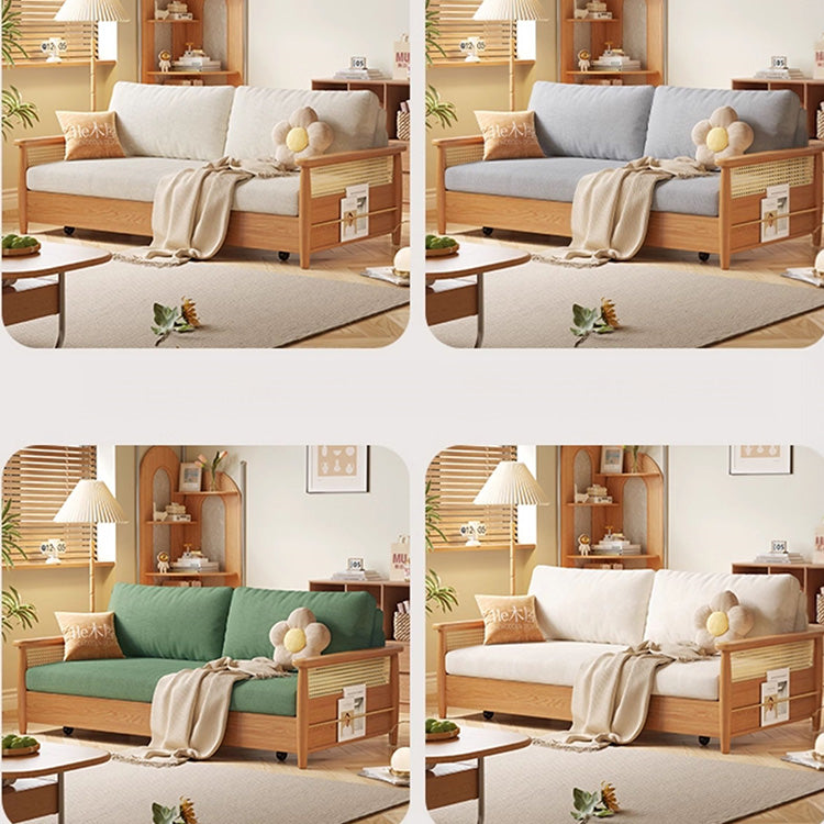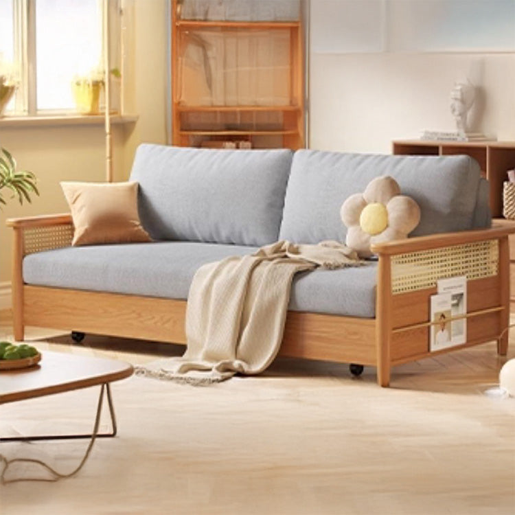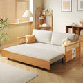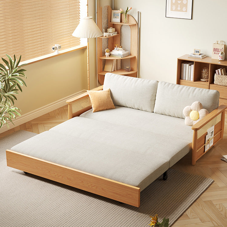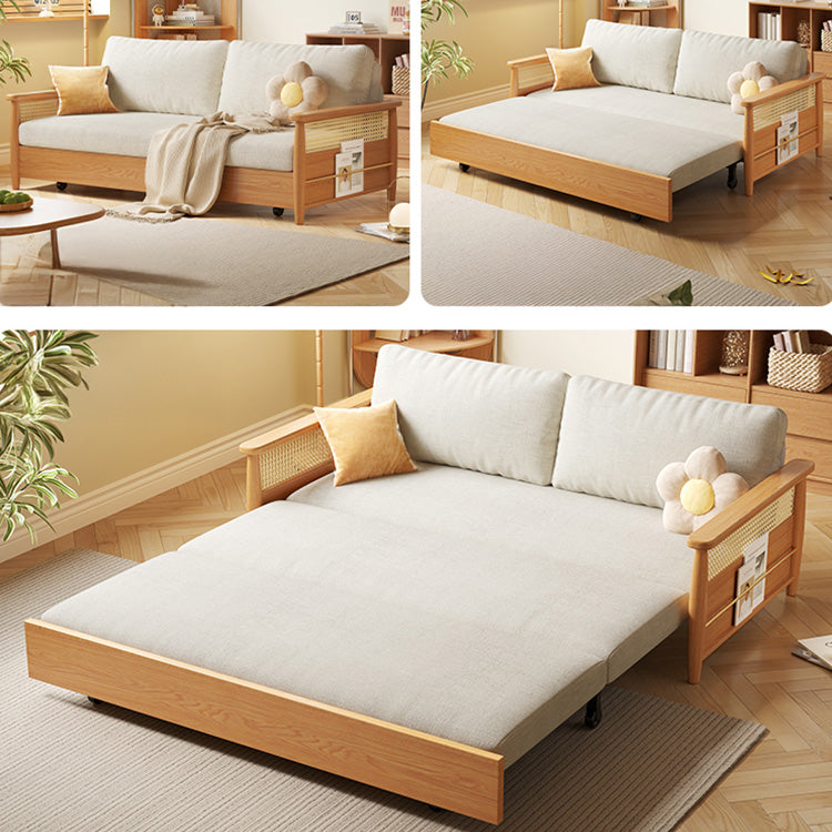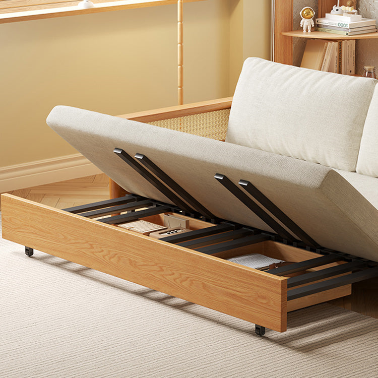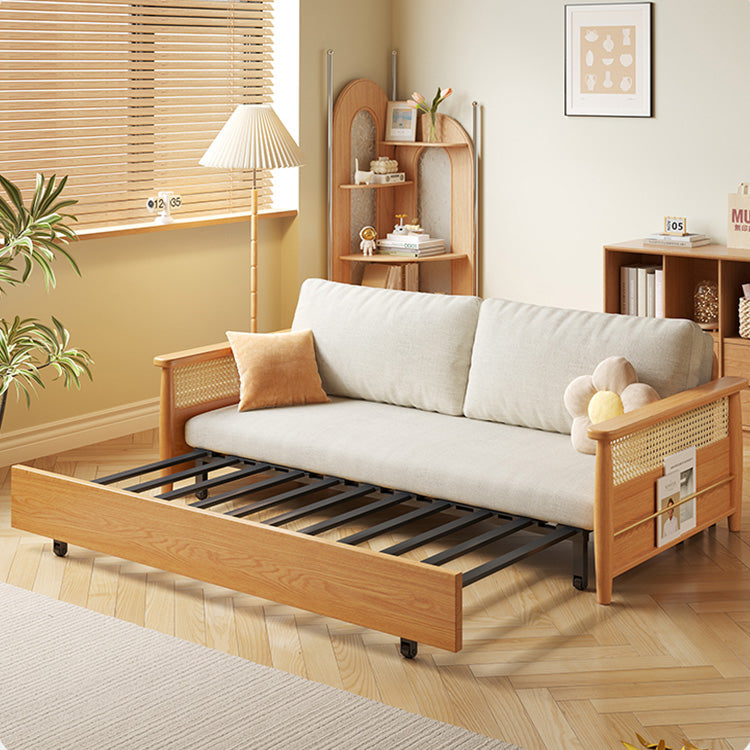 ソファベッド2WAY木製多機能家具 キャスター付き伸縮式 引っばるだけで便利 ラタン調アームでおしゃれhemw-6300