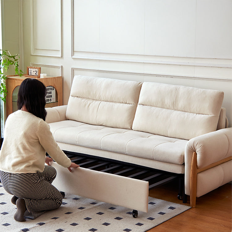 伸縮式の機能で省スペースを実現するソファベッド。高密度ウレタンと綿クッションがもたらすふわふわの座り心地で、リラックスタイムを充実させます。ペット対応生地を採用しているため、大切なペットとの生活にも安心。ソファとベッドの2役をこなし、来客時や急な宿泊にも柔軟に対応できます。限られたお部屋でも快適な暮らしをサポートする、多機能な一台です。