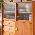 チェリー材とケヤキの上質な木目が映える高級キャビネットです。多層板の強度とガラス扉の透明感、銅のアクセントが調和した、ミッドセンチュリーモダンデザイン。複数の引き出しと飾り棚で、小物から書類まで美しく整理できます。リビング、キッチン、オフィスなど、どの空間にも洗練された雰囲気をもたらす多機能性。丁寧な造りで長く愛用でき、金物のカスタマイズで自分らしさを表現できる、まさに芸術作品のような収納家具です。
